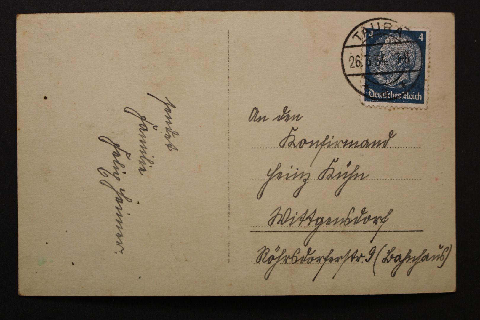 Gelaufen, leicht bestoßen, leicht fleckig.