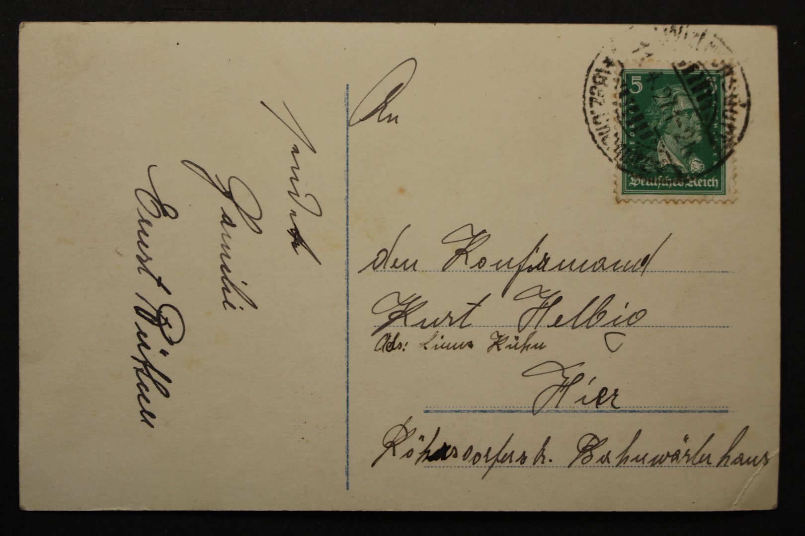 Gelaufen, leicht bestoßen, leicht fleckig, Eckknick rechts unten.