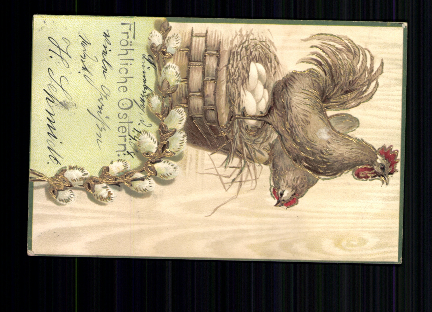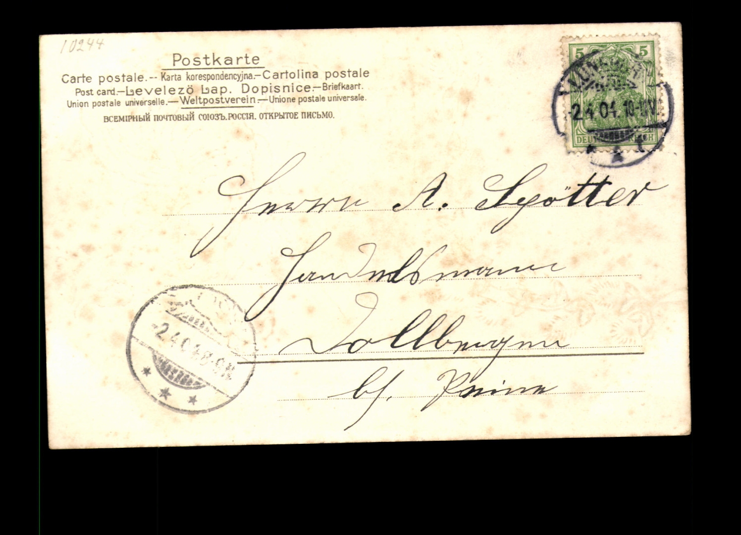Prägekarte, gelaufen, Ecken bestoßen, fleckig.