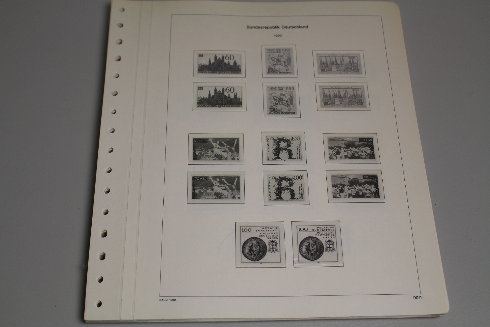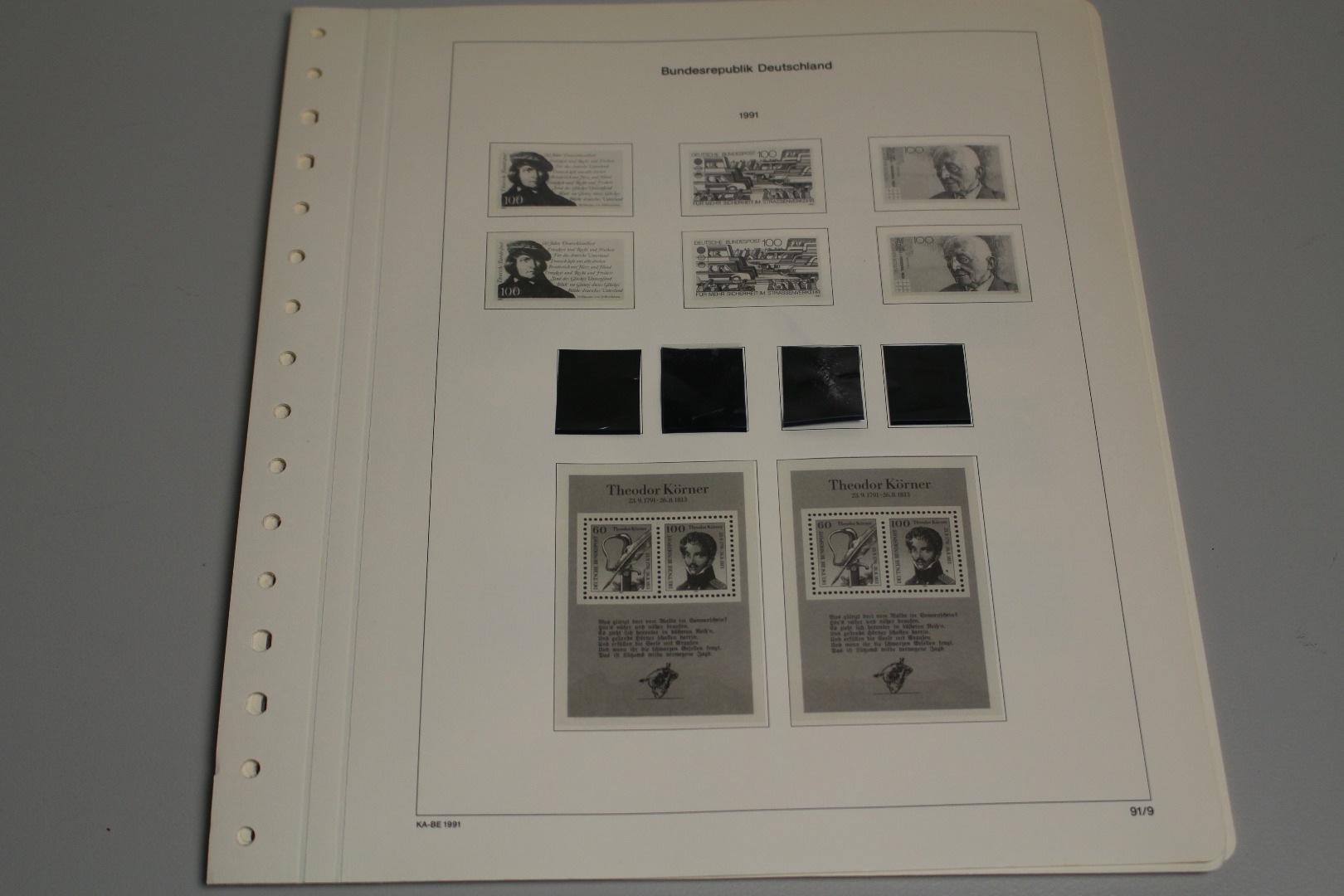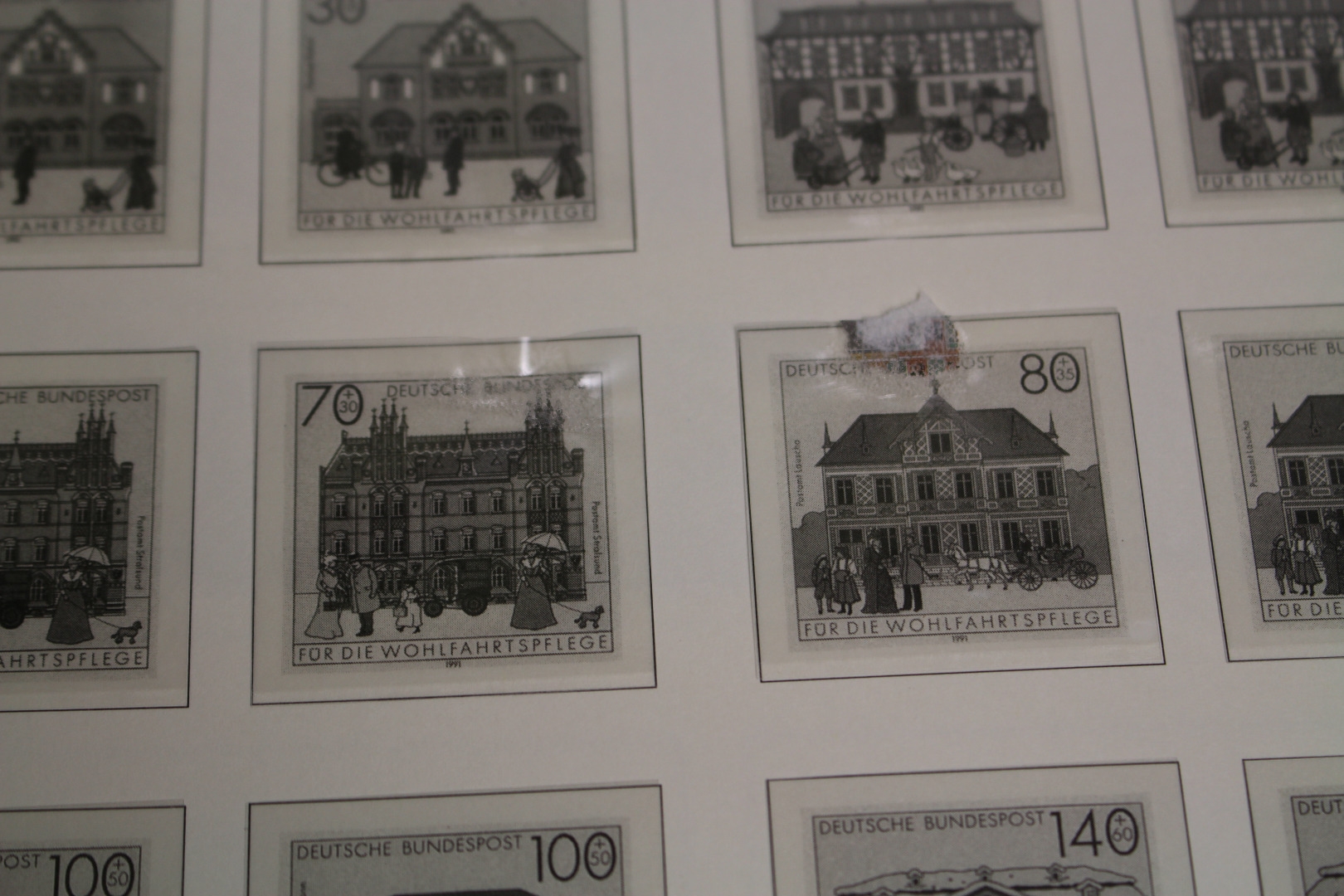 Postfrisch und gestempelt auf einem Blatt nebeneinander. Kompletter Vordrucksatz mit 34 Blättern, ältere Ausgabe mit selbst eingeklebten Klemmtaschen. Die Blätter sind gebraucht mit leichten Alterungsspuren. 10 Klemmtaschen sind beschädigt. Zudem ist das Papier bei 3 Klemmtaschen beschädigt und ein Blatt hat auf der Rückseite eine Beschädigung.