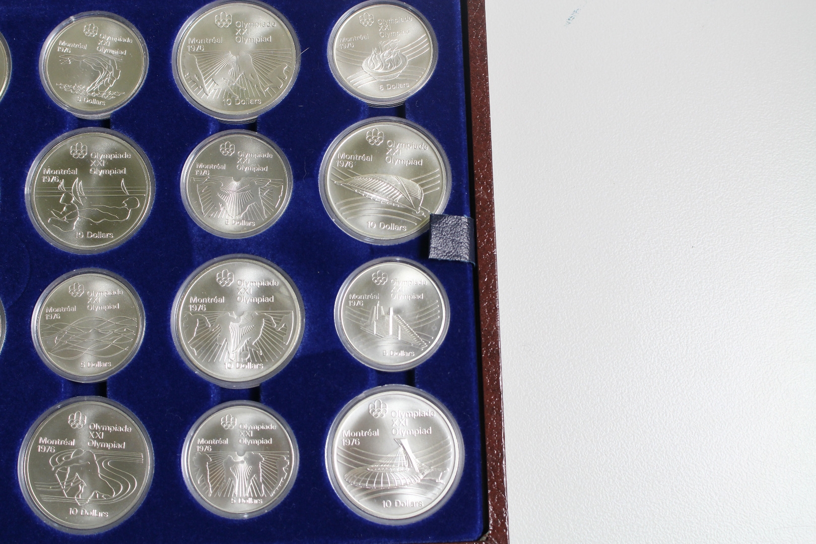 Komplette Sammlung in Stempelglanz-Qualität aller 5 und 10 Dollar Silbermünzen. Die Münzen sind verkapselt, ohne Zertifikate. Die 5 Dollar Münzen wiegen je 24,3 g, die 10 Dollar Münzen 48,4 g. Insgesamt sind das über 1 Kilo Gesamtgewicht. Alle Münzen sind in 925er Silber geprägt. Untergebracht in einer großen einlagigen Kassette mit vorderseitigen Druckstellen.