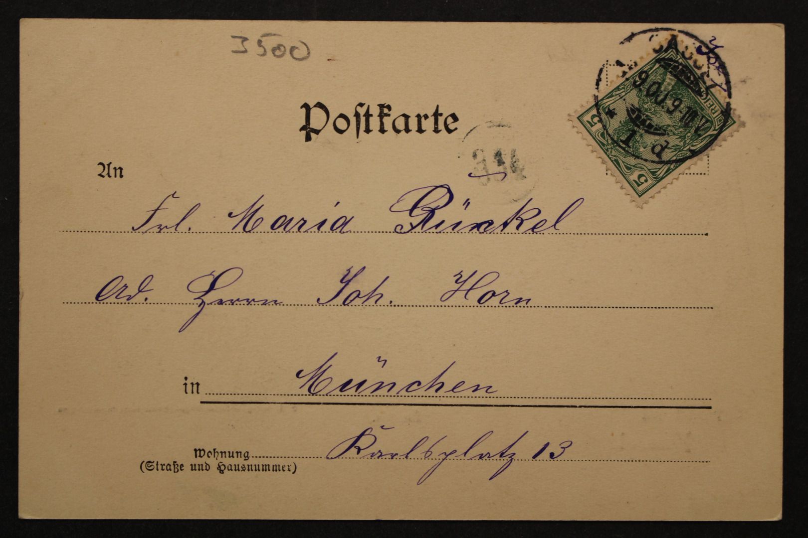 Karte gelaufen, etwas bestoßen, leicht fleckig