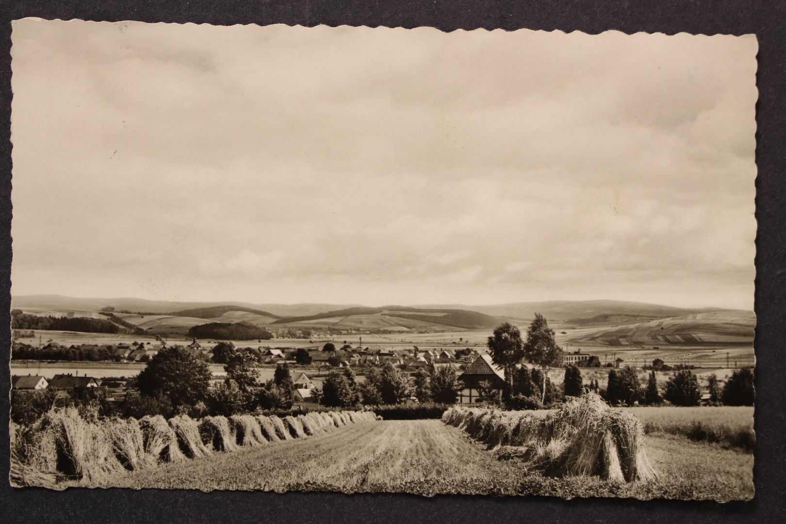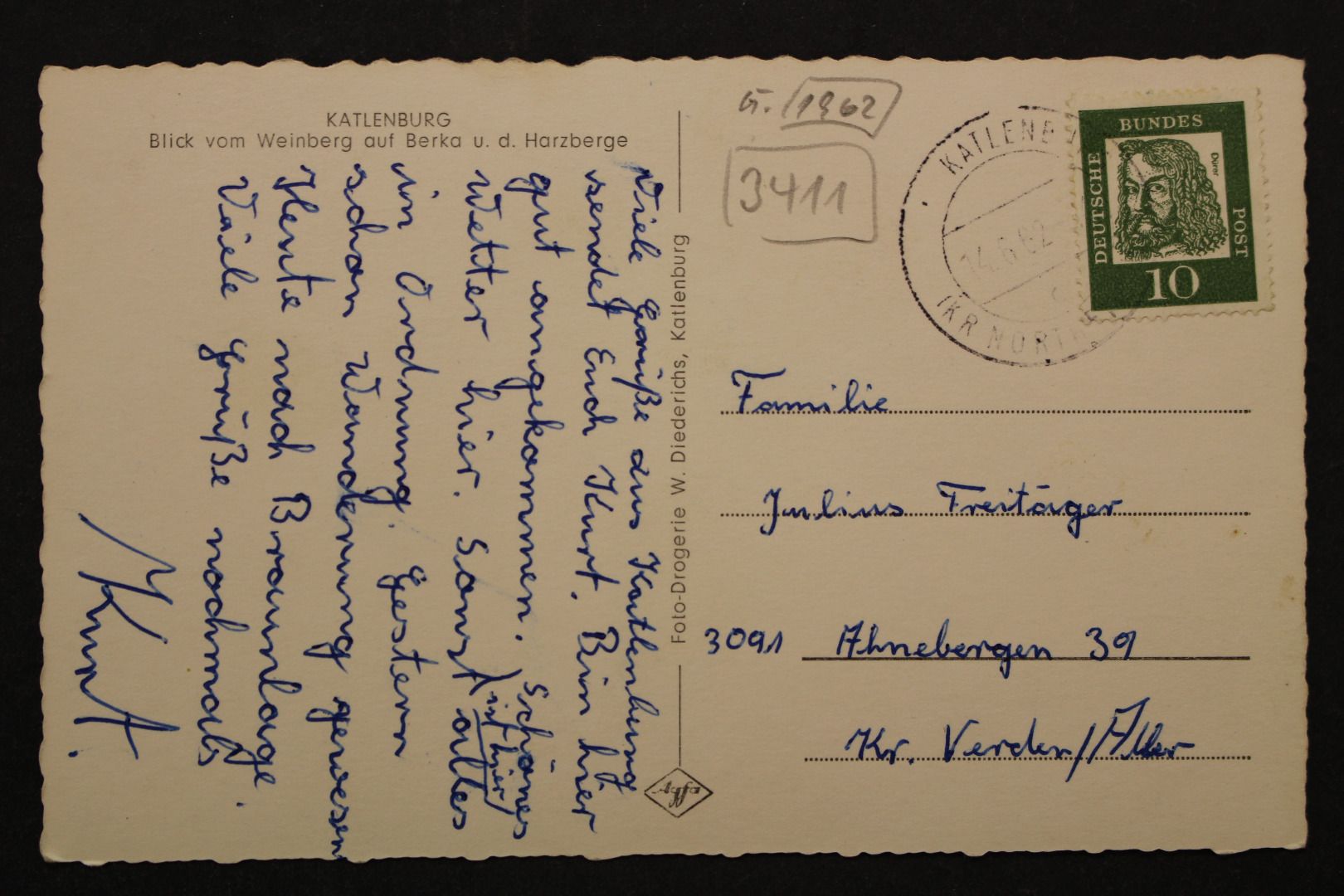 Karte gelaufen, etwas bestoßen, leicht fleckig