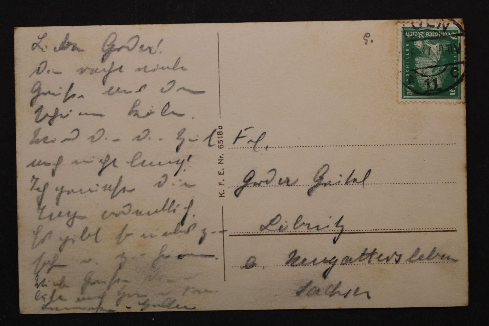 Karte gelaufen, etwas bestoßen, leicht fleckig