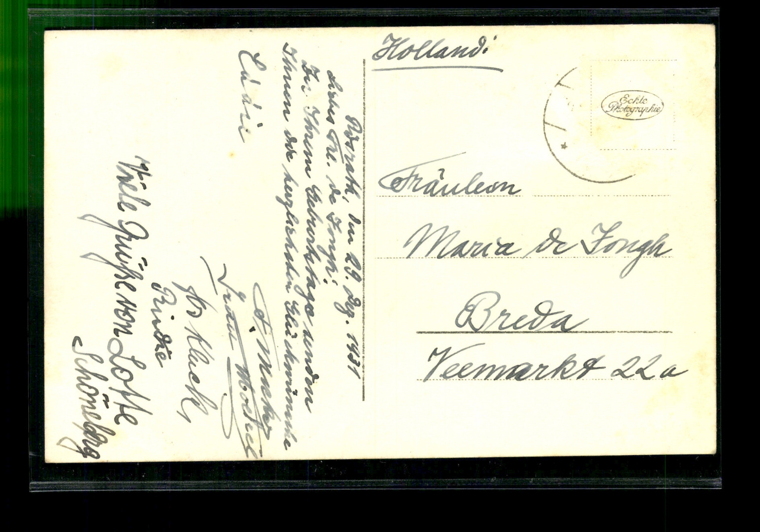 Gelaufen, Ecken bestoßen, leicht fleckig, Marke entfernt, dadurch helle Stelle.