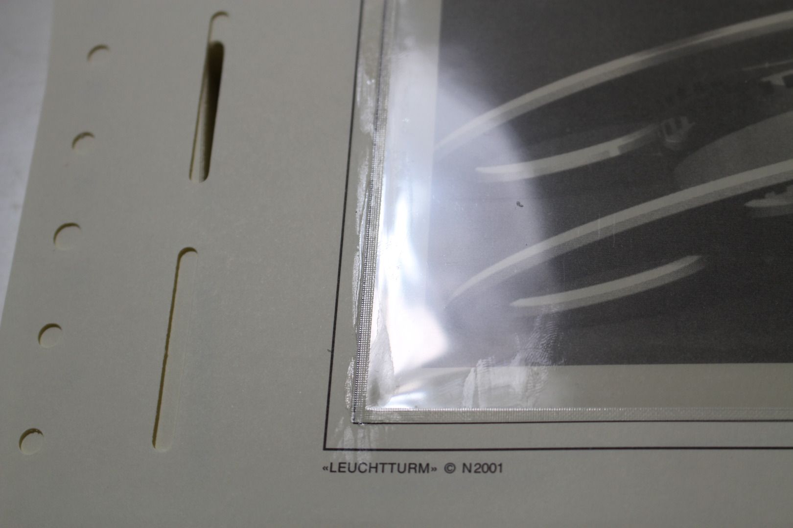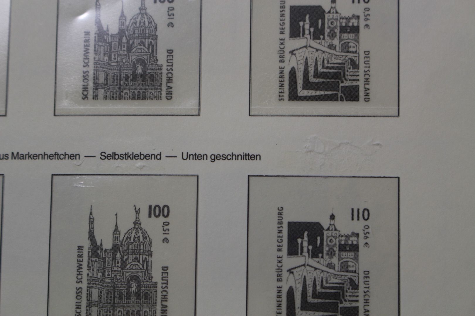 Die Dauerserien sind auf Gemeinschaftsblättern untergebracht. Ein Blatt mit nachgeklebter großer Klemmtasche sowie ein Blatt mit Anhaftungen (siehe Bild 2 und 3).