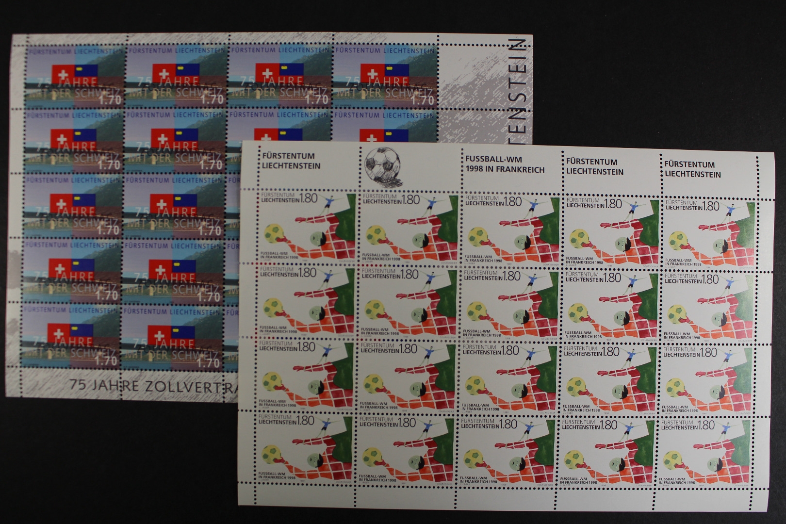 75 Jahre Zollvertrag, Fußball WM, 2 Kleinbögen, 20 Sätze.