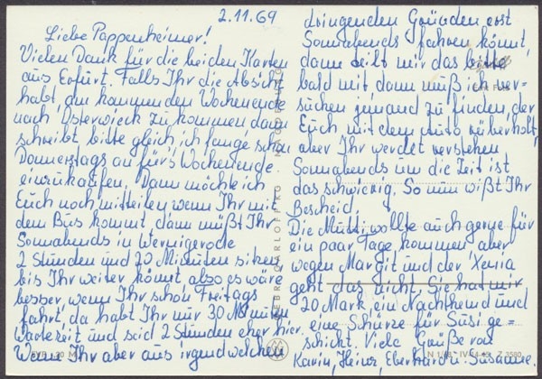 nicht gelaufen, beschriftet 1969, Ecken bestoßen