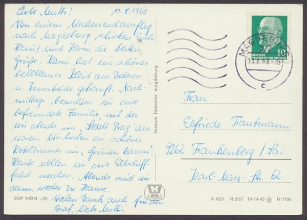 1968 gelaufen, Ecken bestoßen, leicht fleckig