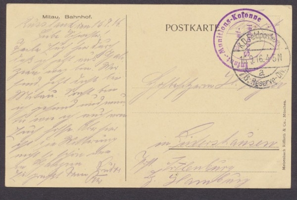 1916 gelaufen, Ecken bestoßen, leicht fleckig