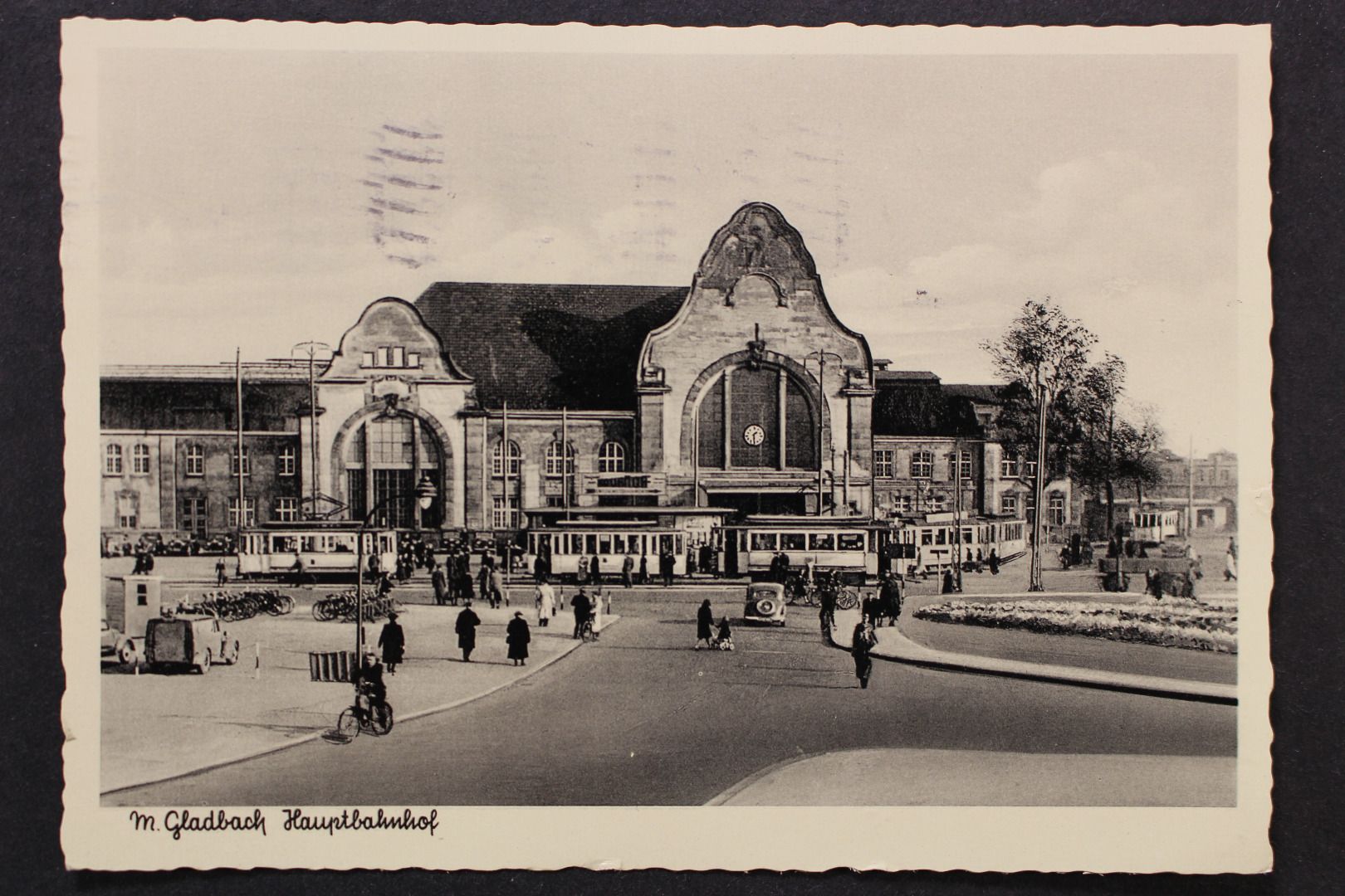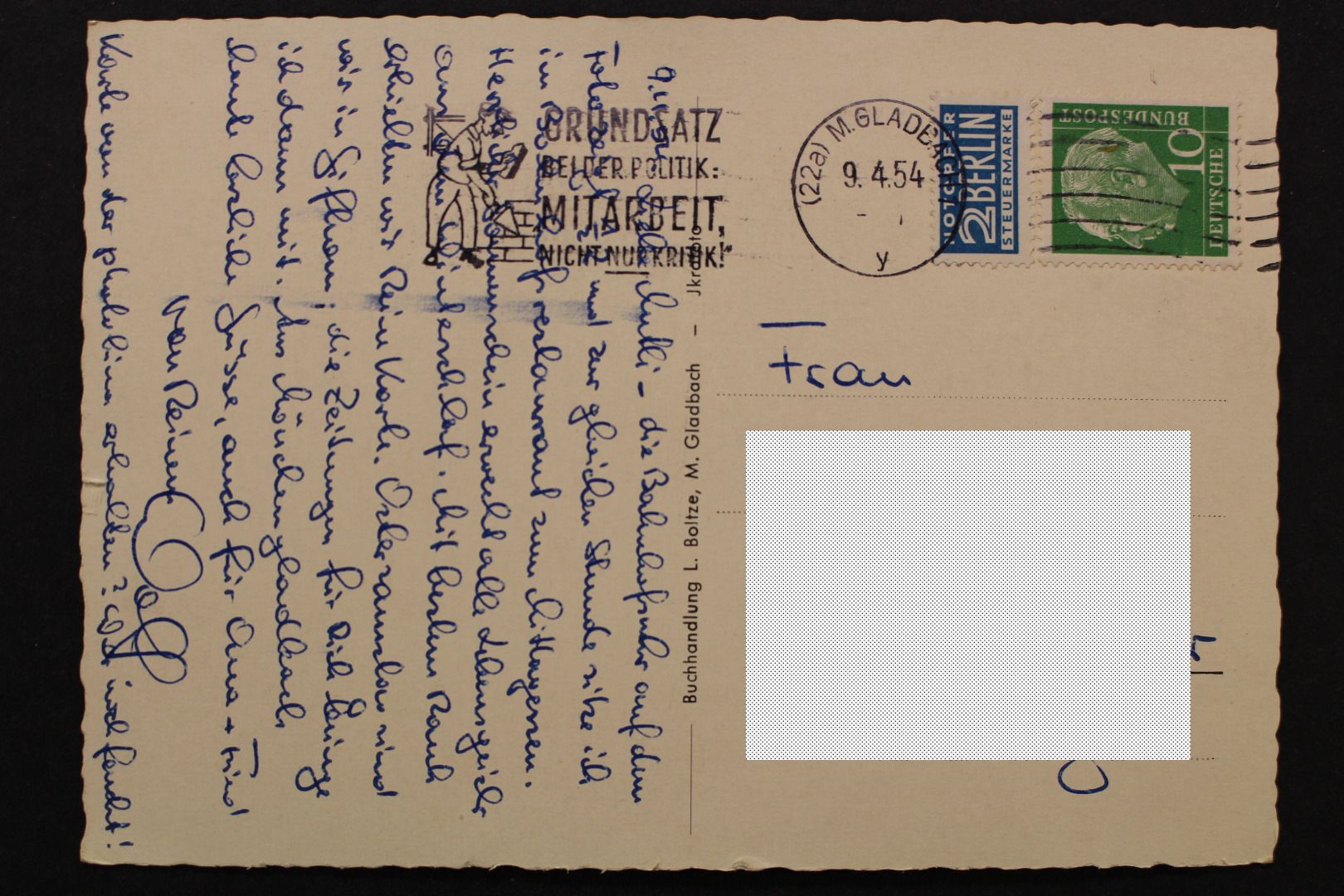 Karte gelaufen, etwas bestoßen, leicht fleckig, rechts 2 mm Einriss
