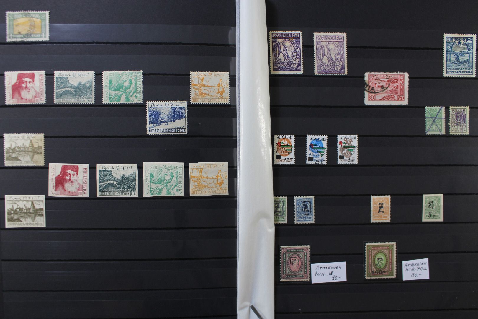 Enthalten sind neben der Mongolei: Armenien, Aserbaidschan, Kasachstan, Kirgisien, Tatschikistan, Transkaukasien, Tuwa und Usbekistan. Teils interessantes älteres Material. Untergebracht in einem Einsteckalbum.