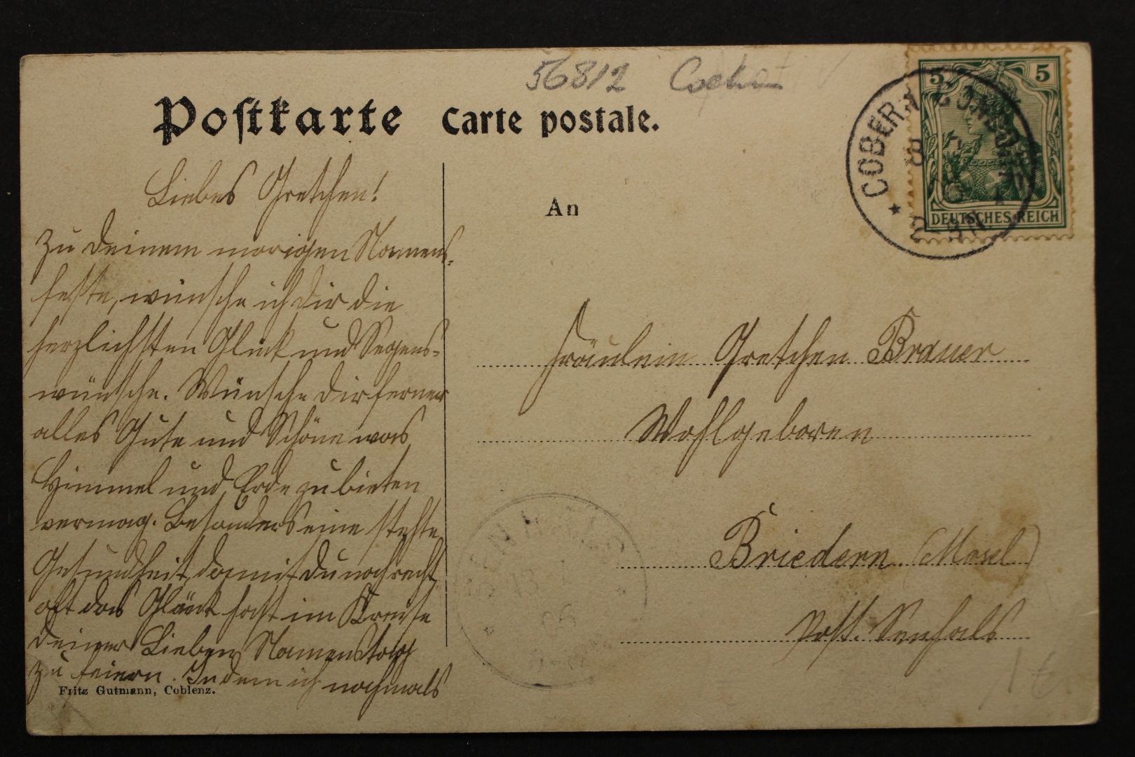 Gelaufen, leicht bestoßen, leicht fleckig.