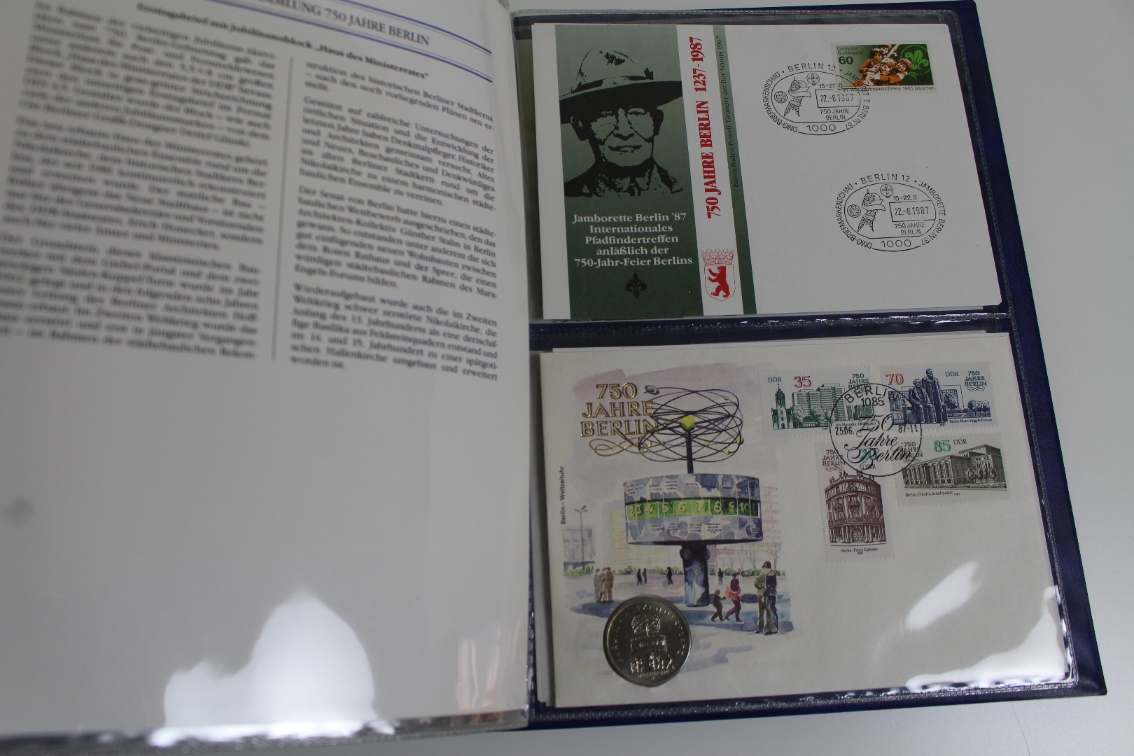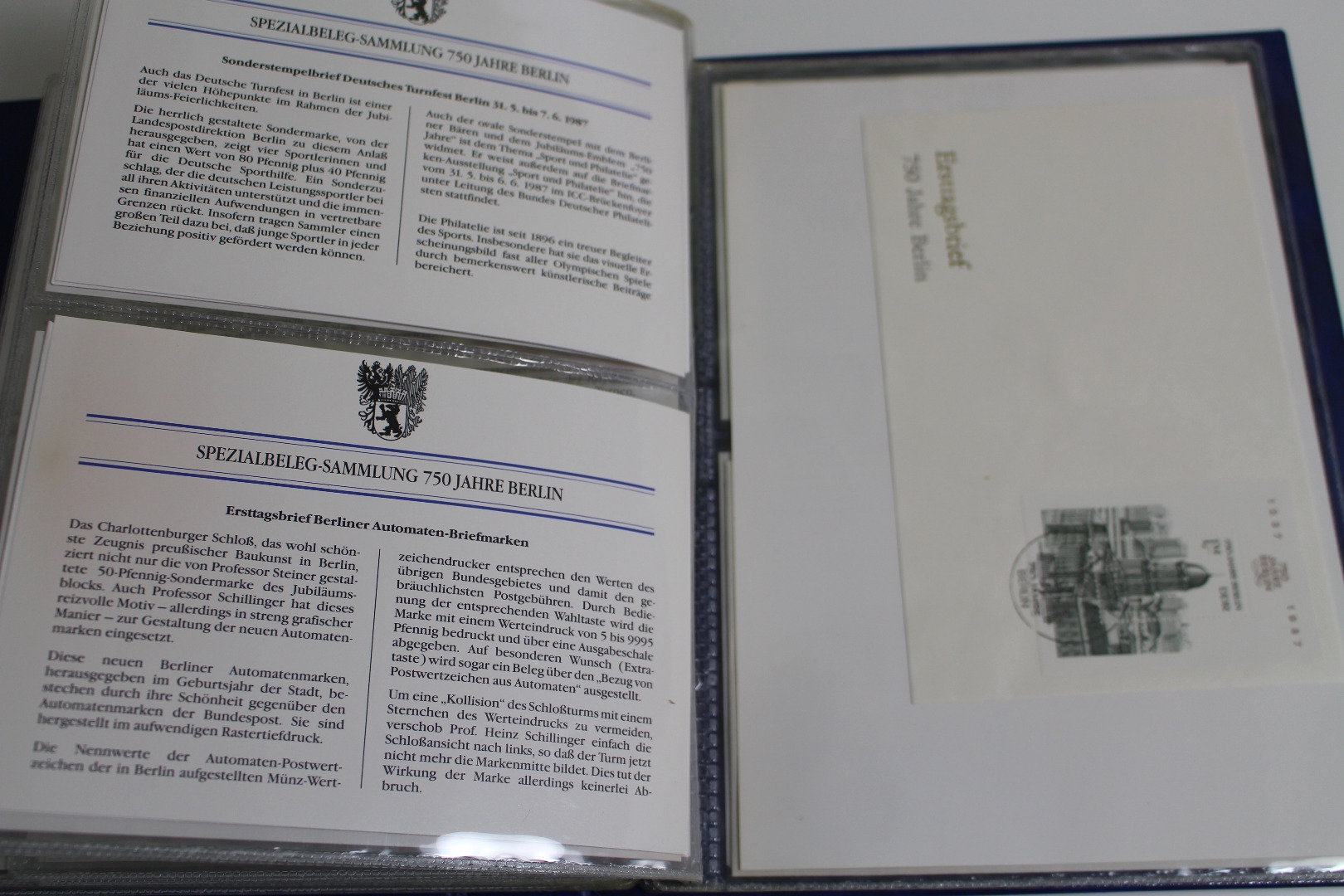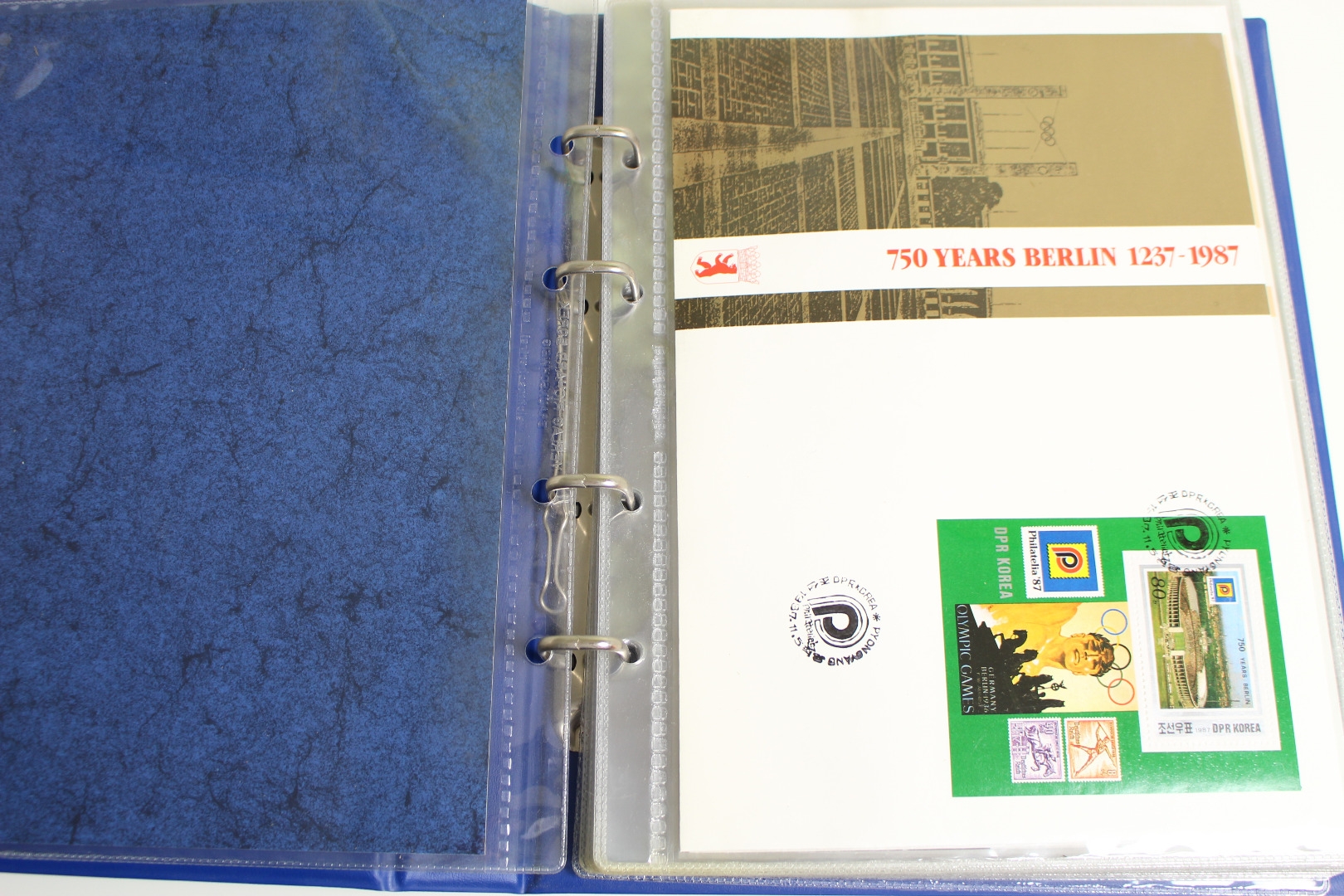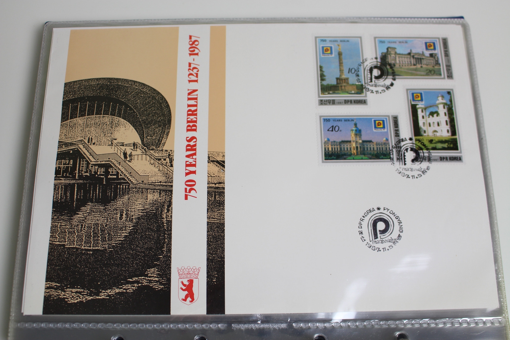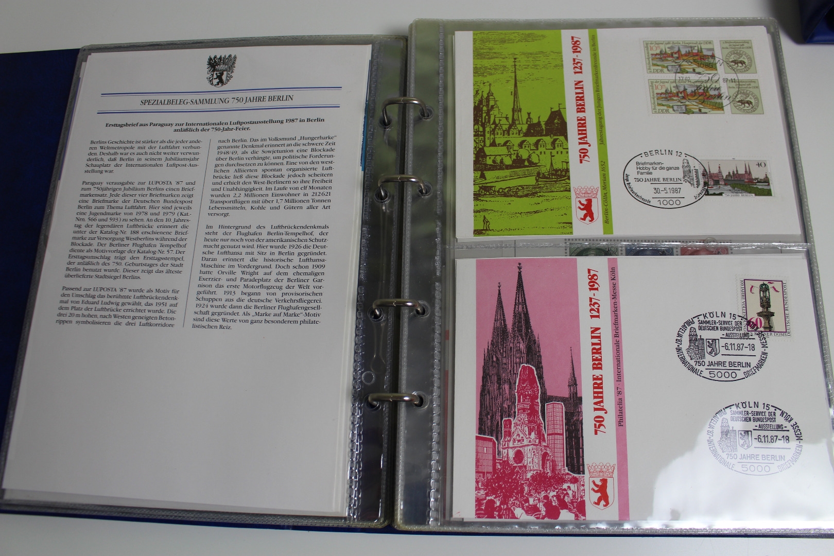Teilsammlung mit vielen Briefmarken und Sonderbelegen, -drucken, Maximumkarten, 2 Numisbriefen usw. aus den Gebieten BRD, Berlin und DDR sowie etwas Ausland. Untergebracht in 2 Ringbindern. Ein Binder vorder- und rückseitig mit starker Wellenbildung.