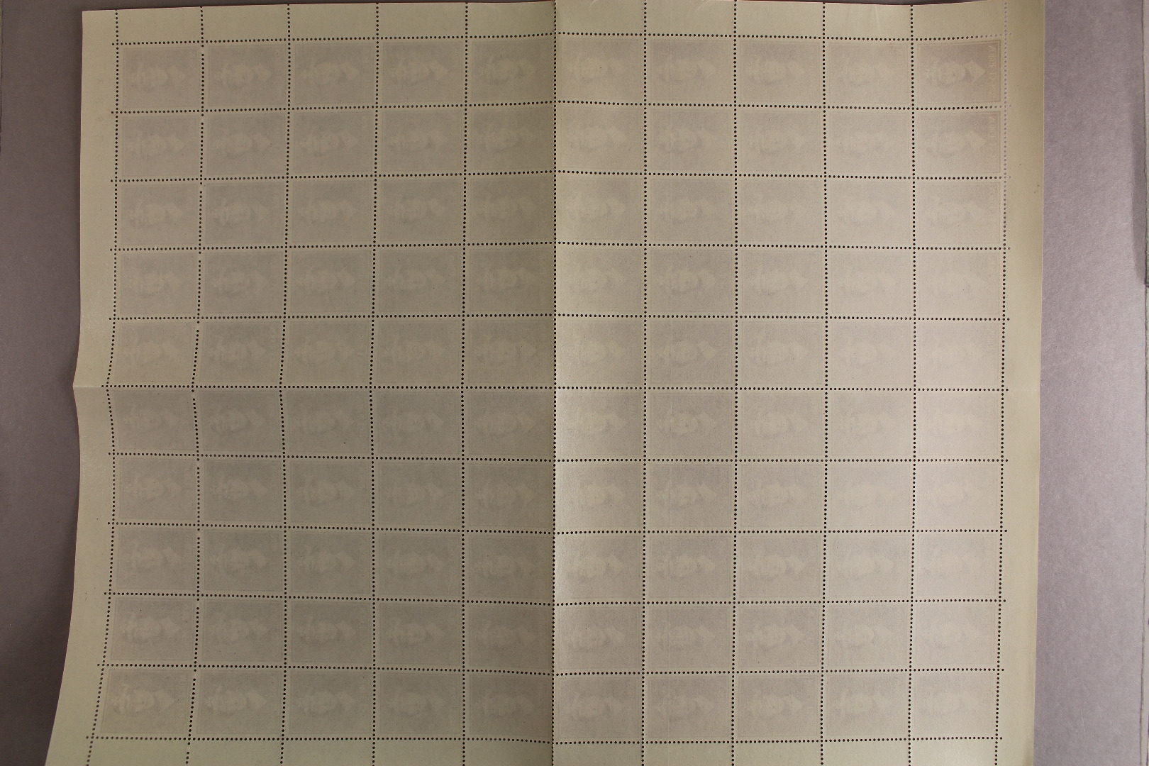 Hilfsfond "Königin Maud", waagerecht und senkrecht angefaltet, Bogenrand links einmal angetrennt, Bogen wird gefaltet geliefert.