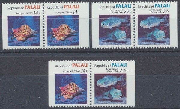 Meerestiere, 3 Zusammendrucke, jede Marke dreiseitig gezähnt, aus Markenheftchen