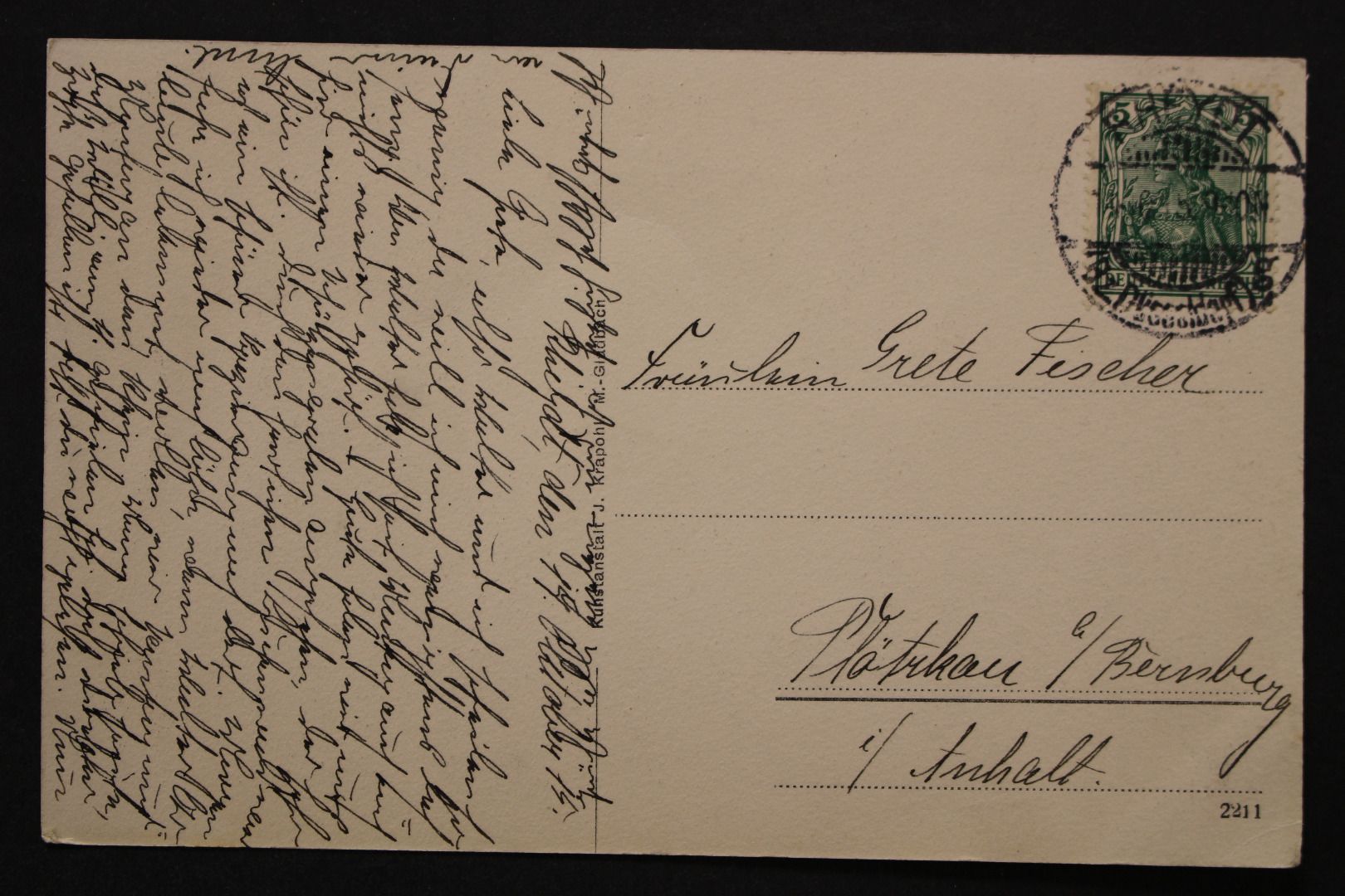 Karte gelaufen, etwas bestoßen, leicht fleckig