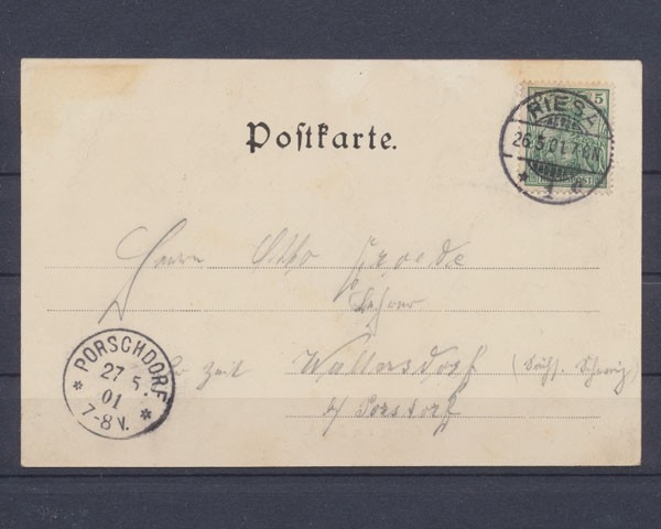 Karte 1901 gelaufen, Ecken leicht bestoßen, gute Erhaltung PLZ 01589