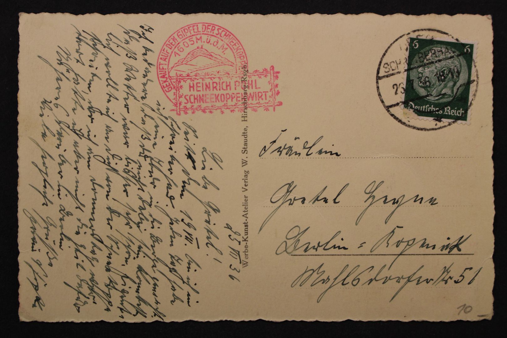 Karte gelaufen, etwas bestoßen, leicht fleckig
