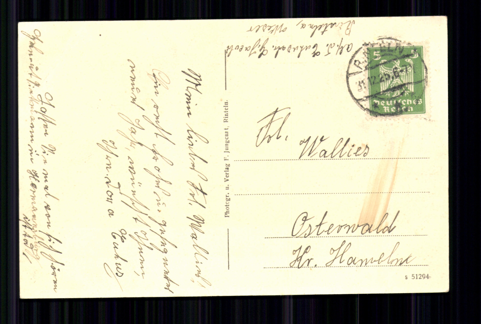 Gelaufen, leicht bestoßen, leicht fleckig, Eckknick rechts oben.