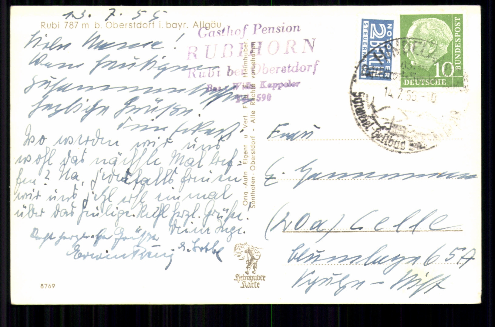 Karte gelaufen, etwas bestoßen, leicht fleckig.