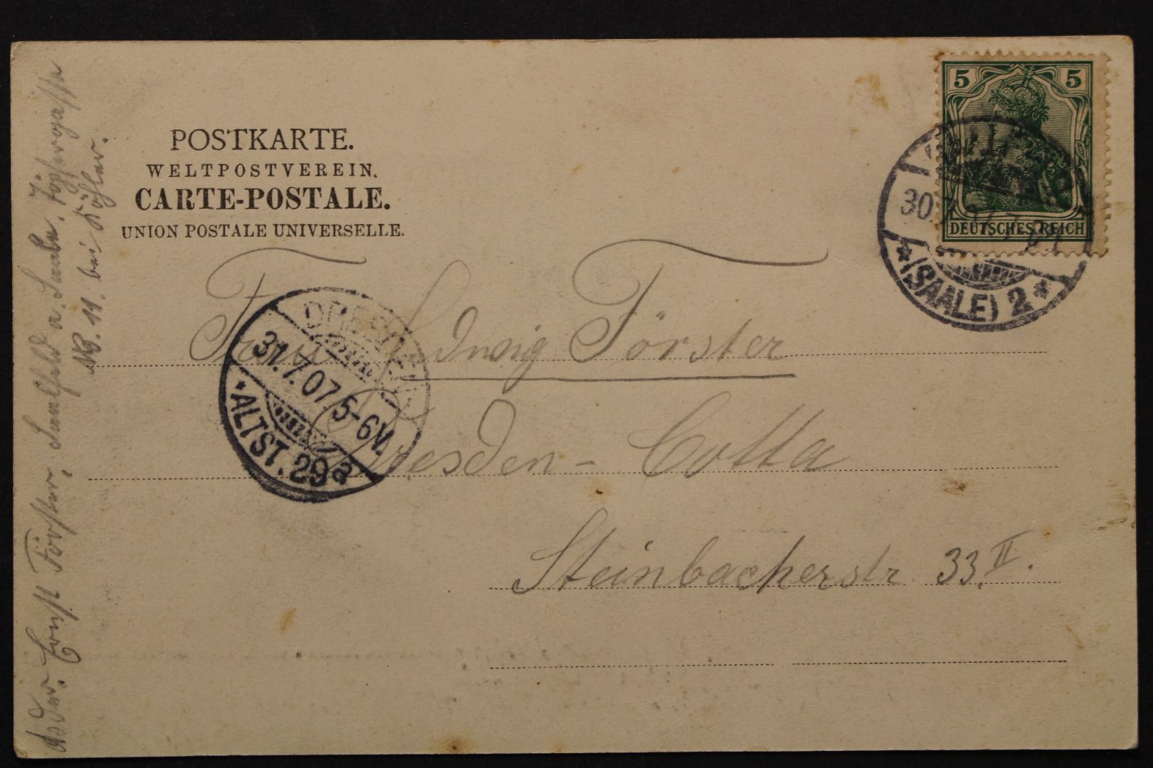 Karte gelaufen, Ecken leicht bestoßen, leicht fleckig