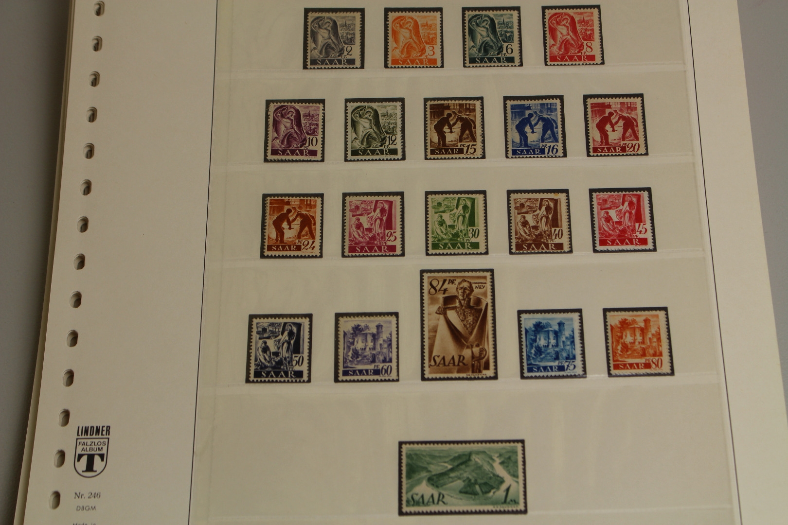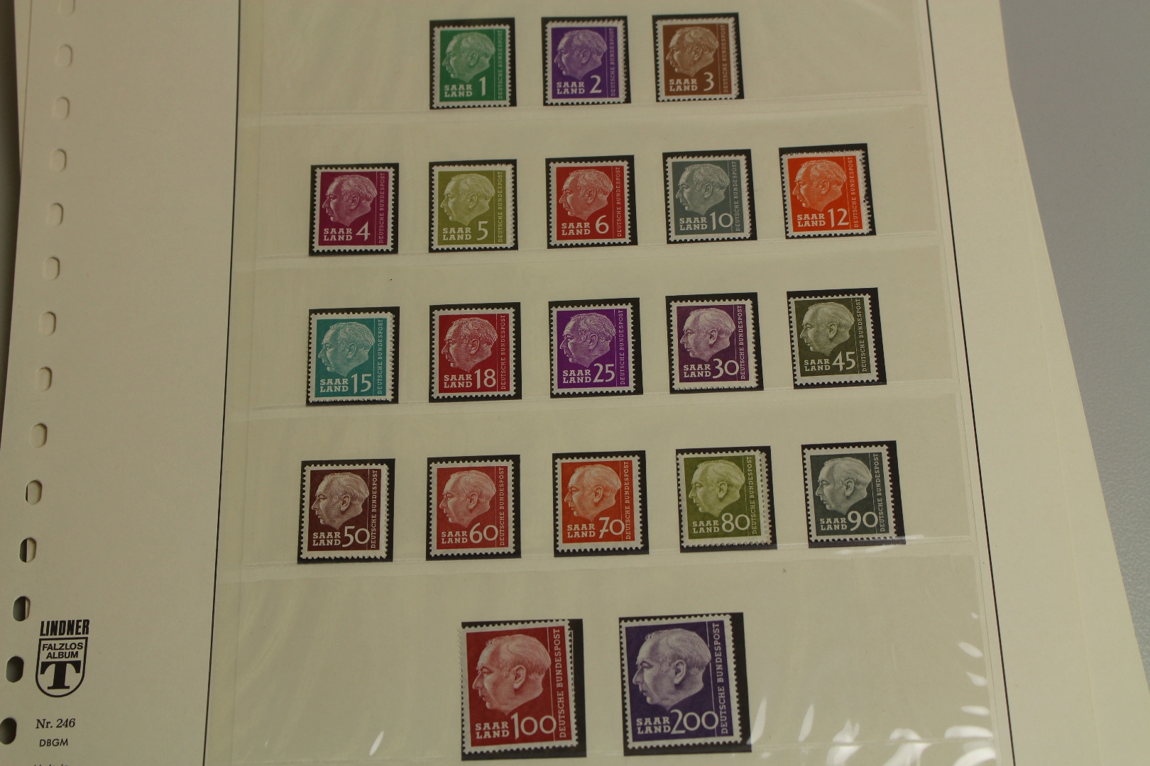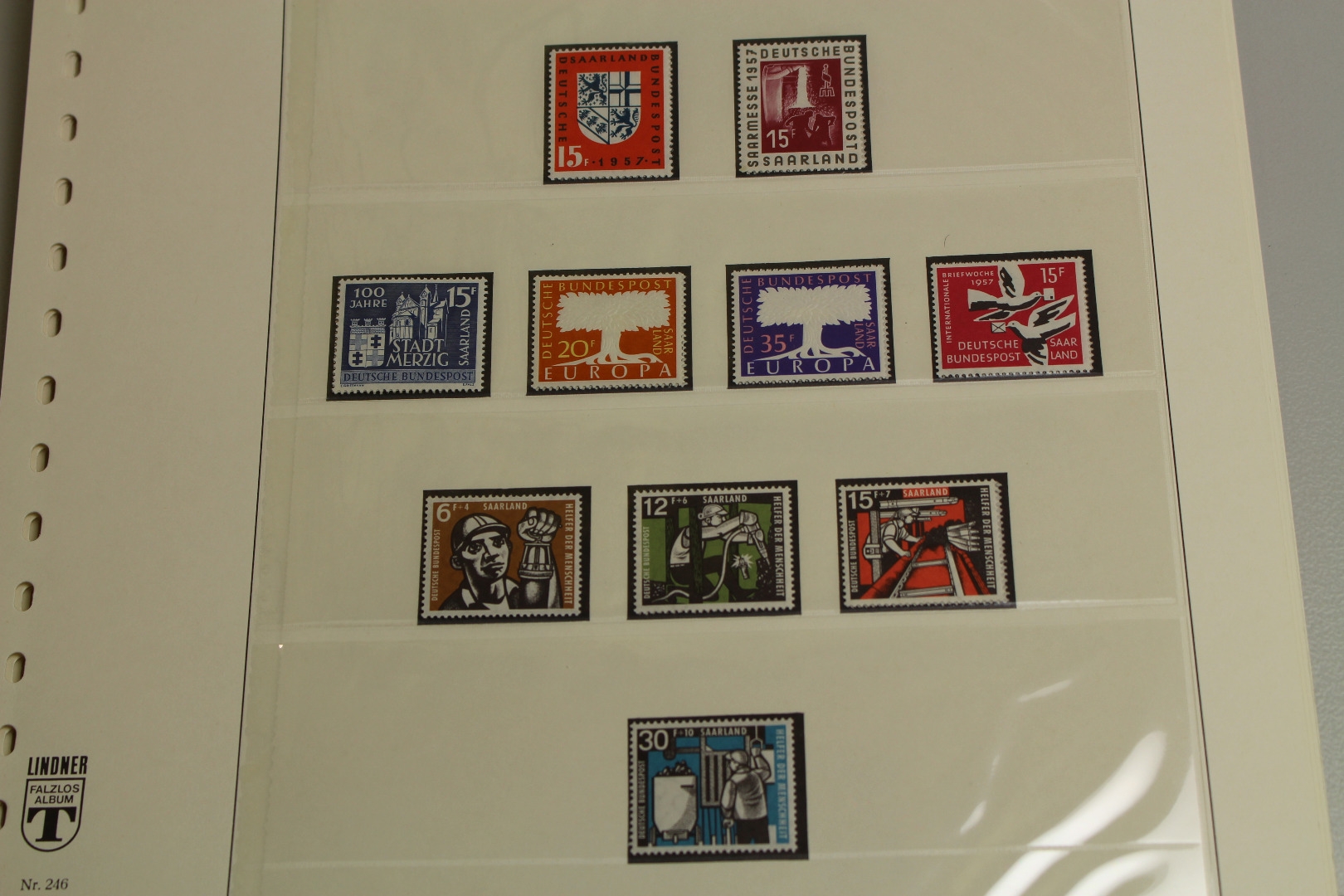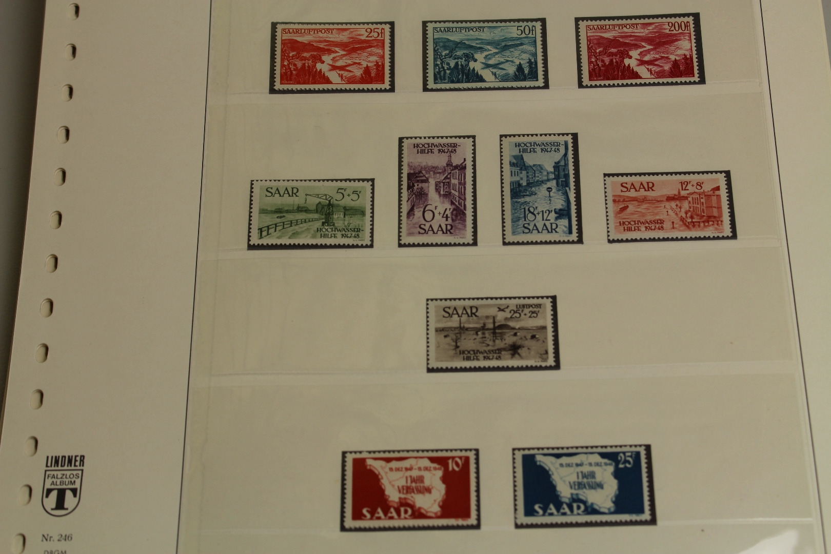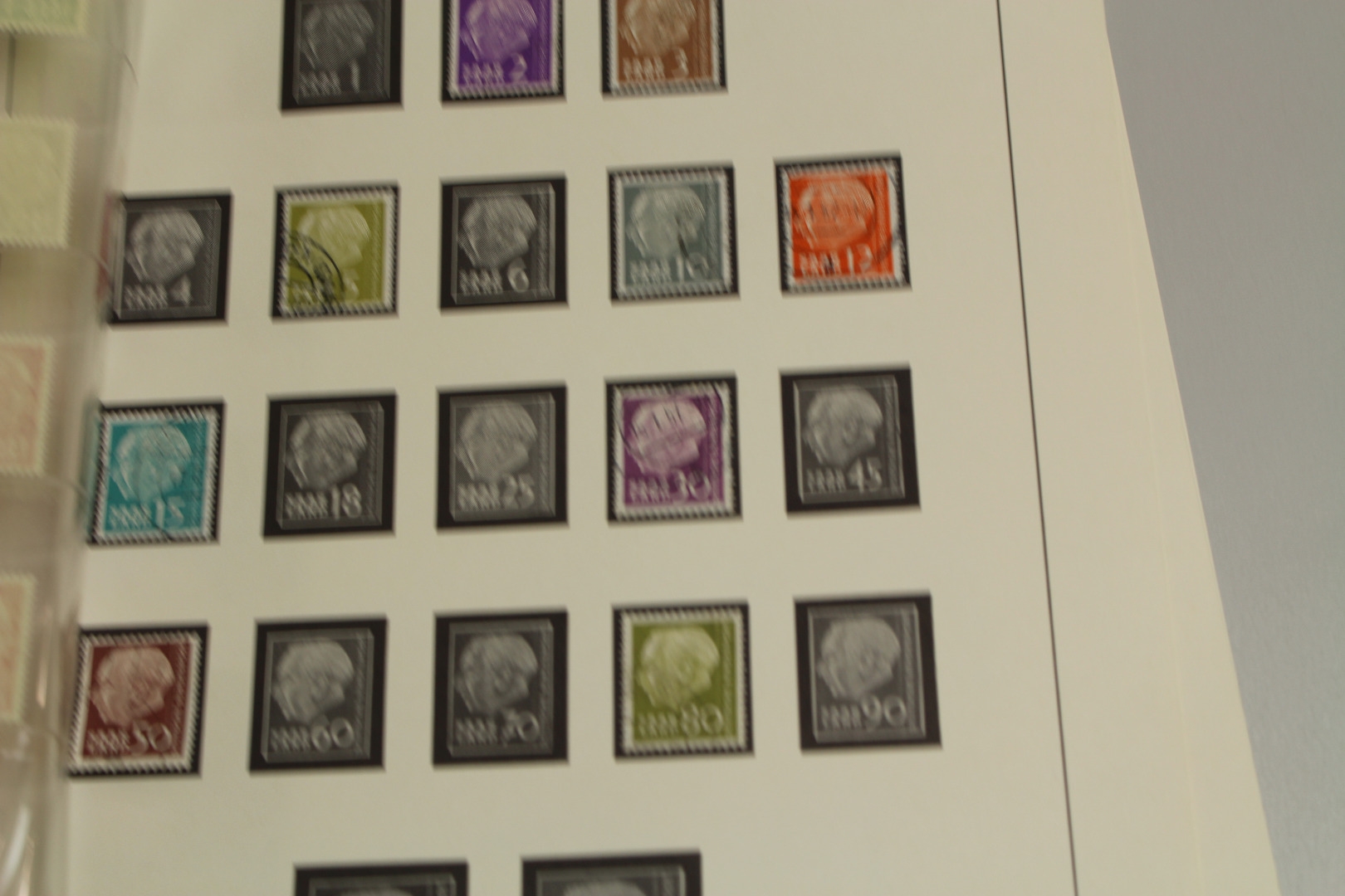 Es fehlen Block 1 + 2 und die Dienstmarken 33-44. Sonst in den Hauptnummern komplette Sammlung. Alle enthaltenen Briefmarken sind einwandfrei postfrisch. Zusätzlich sind viele Briefmarken auch noch gestempelt auf den Lindner T Vordruckblättern eingefalzt.