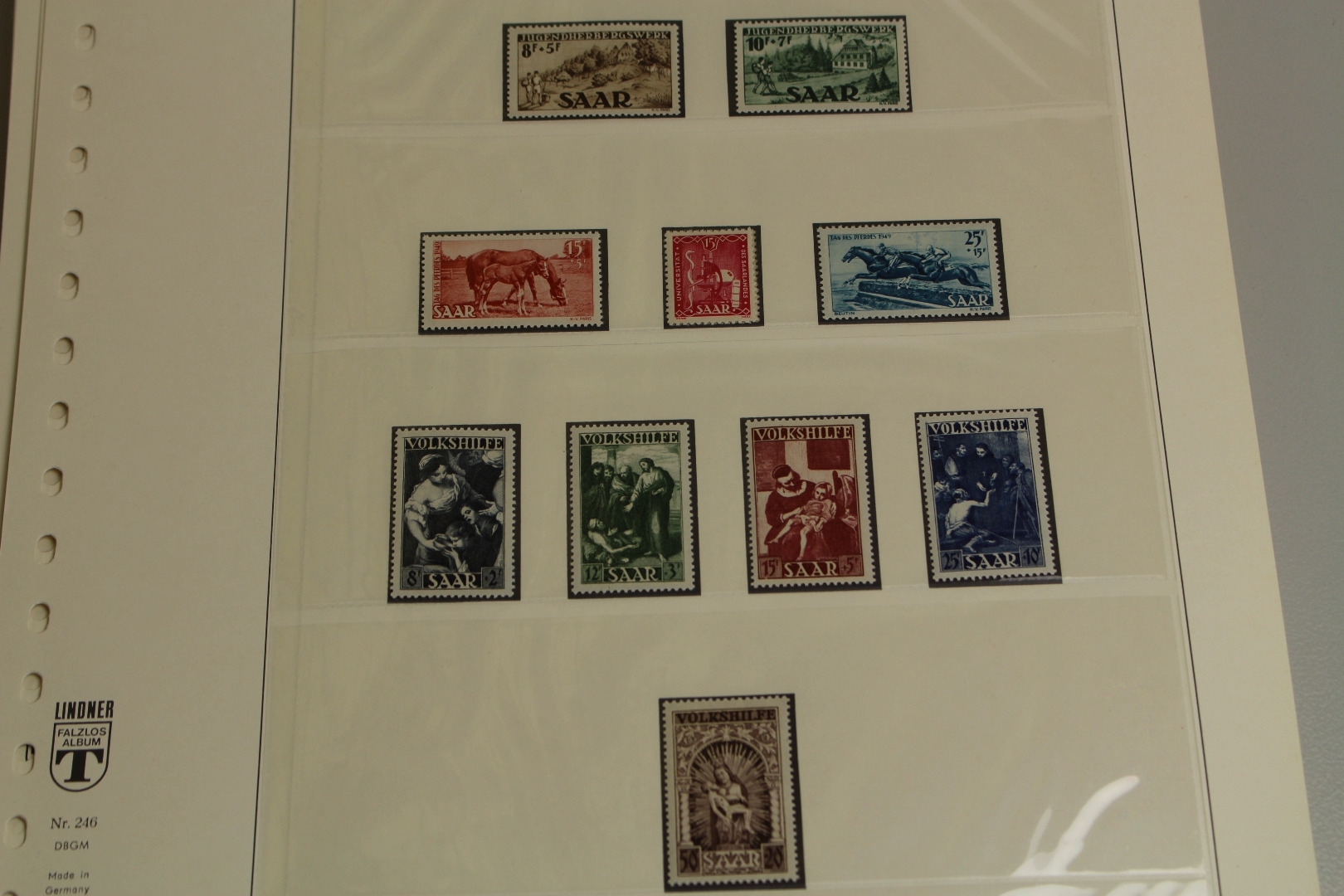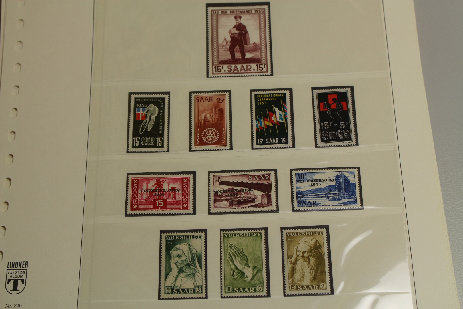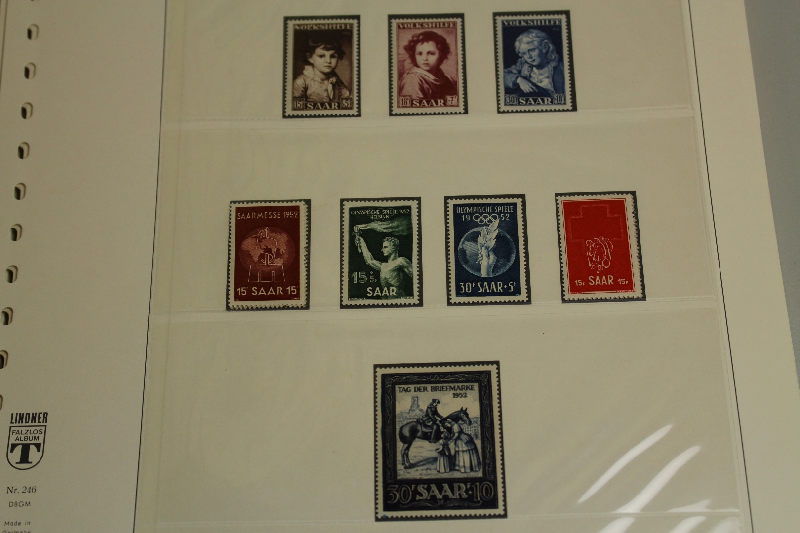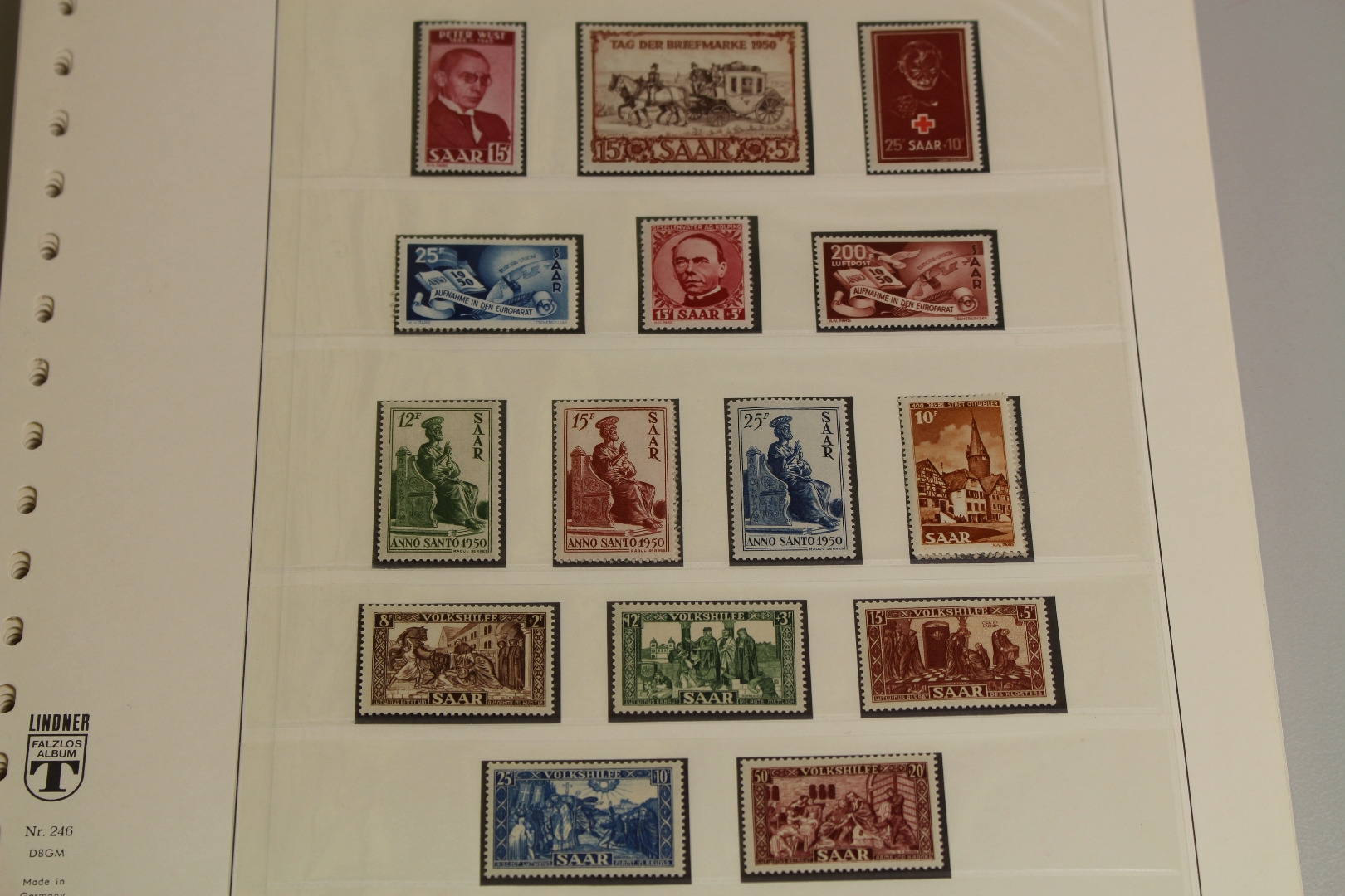 Es fehlen Block 1 + 2 und die Dienstmarken 33-44. Sonst in den Hauptnummern komplette Sammlung. Alle enthaltenen Briefmarken sind einwandfrei postfrisch. Zusätzlich sind viele Briefmarken auch noch gestempelt auf den Lindner T Vordruckblättern eingefalzt.