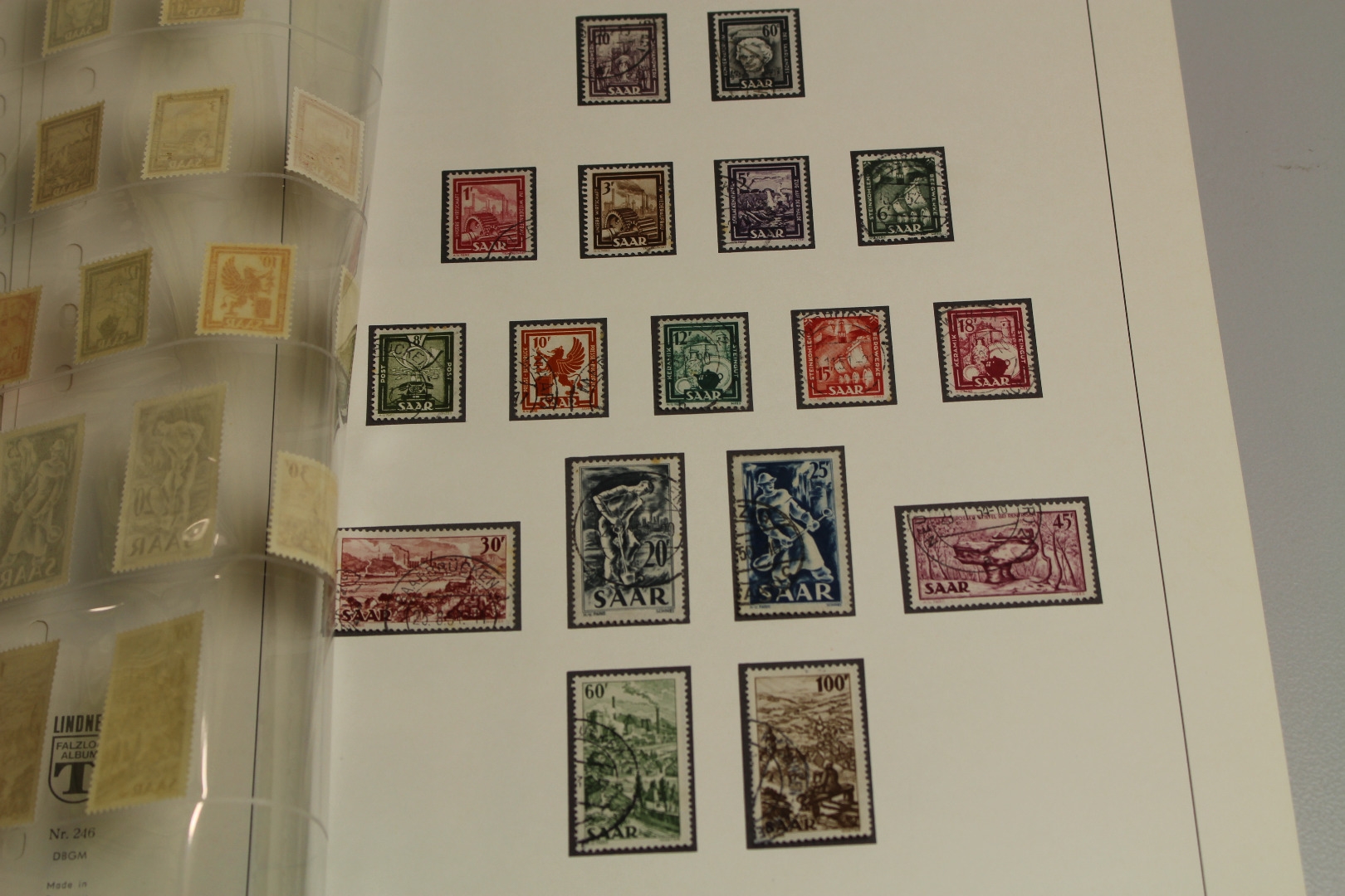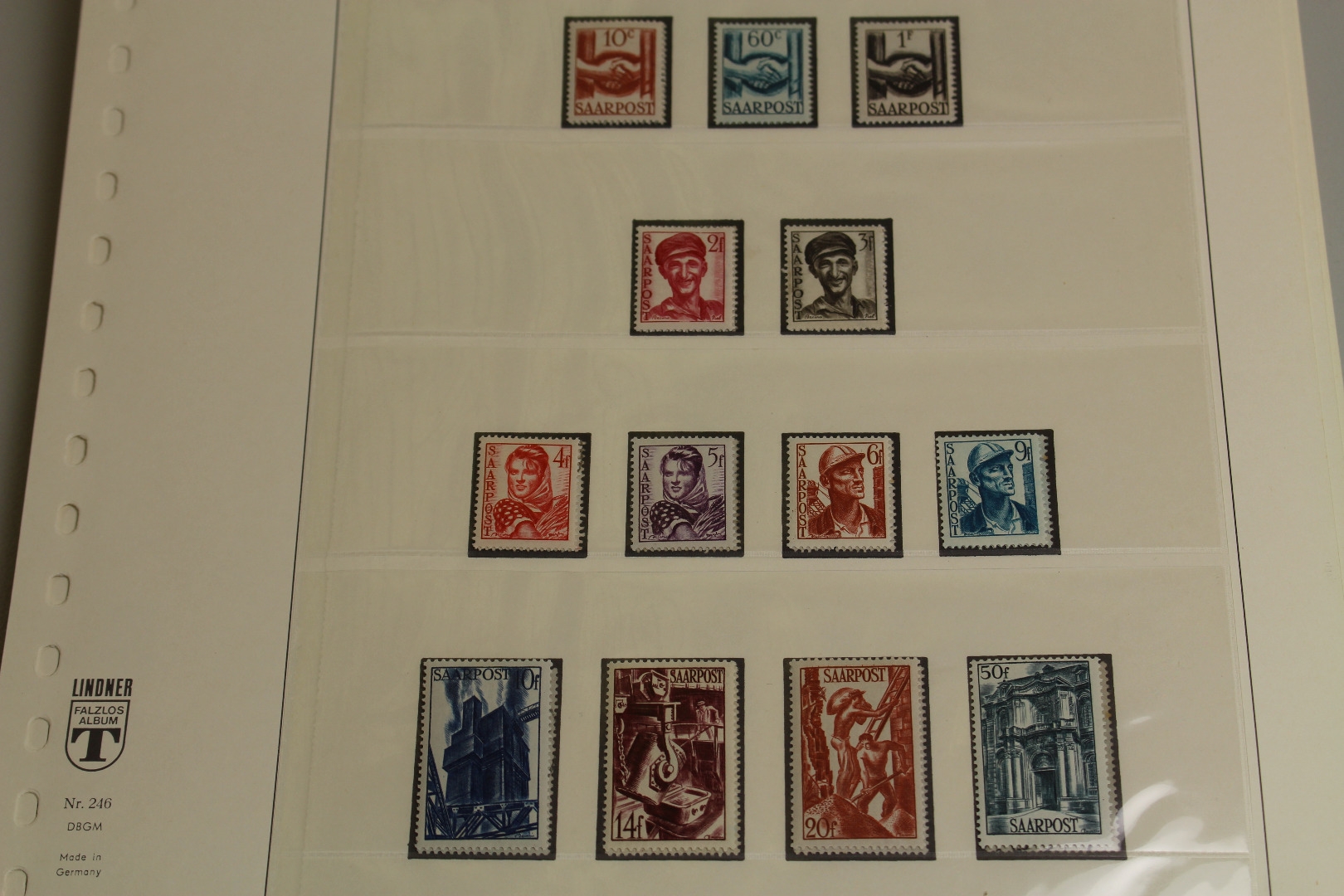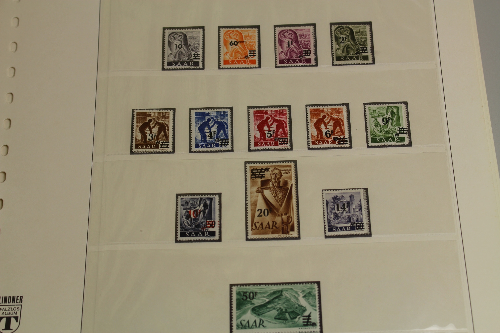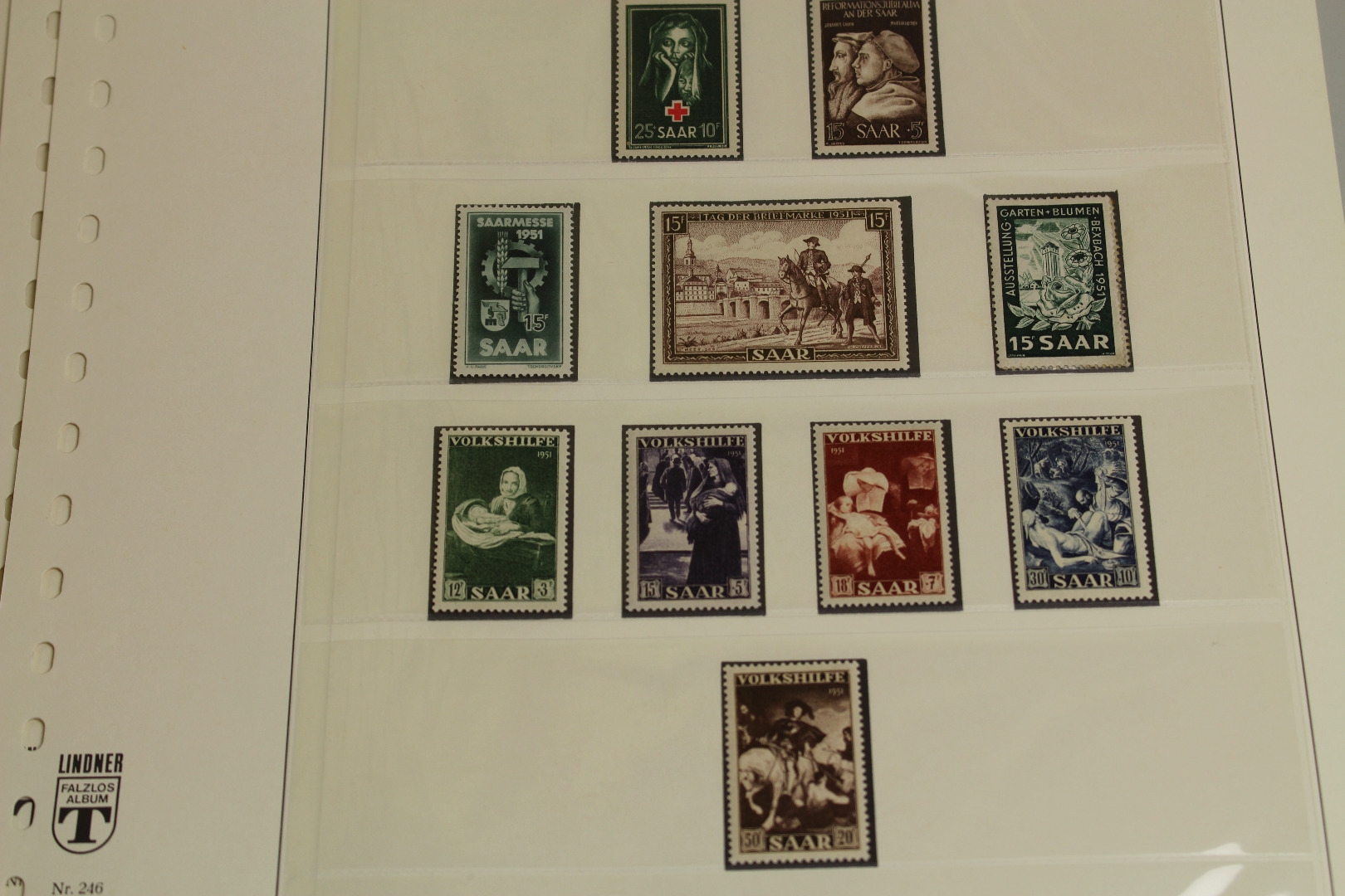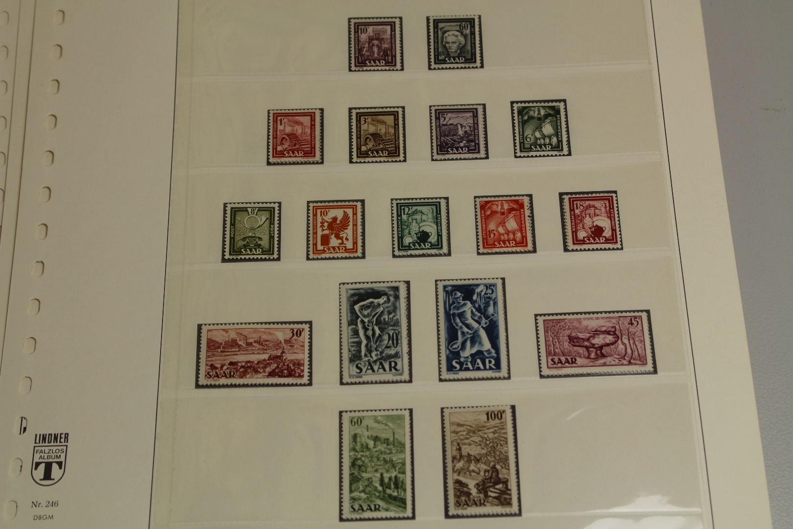 Es fehlen Block 1 + 2 und die Dienstmarken 33-44. Sonst in den Hauptnummern komplette Sammlung. Alle enthaltenen Briefmarken sind einwandfrei postfrisch. Zusätzlich sind viele Briefmarken auch noch gestempelt auf den Lindner T Vordruckblättern eingefalzt.