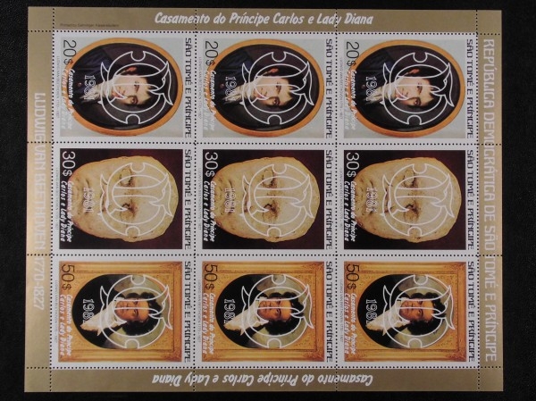 Hochzeit von Prinz Charles und Lady Diana, jede Marke 3 mal, gezähnte Ausgabe, weißer Aufdruck