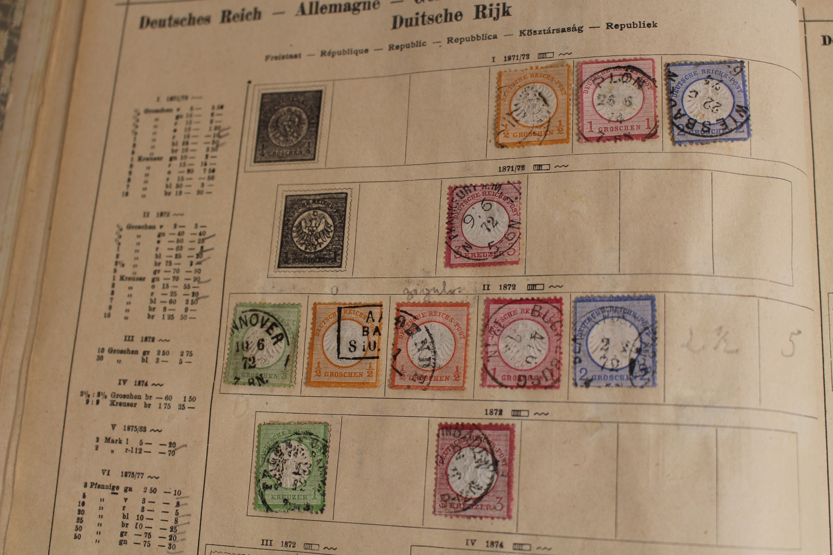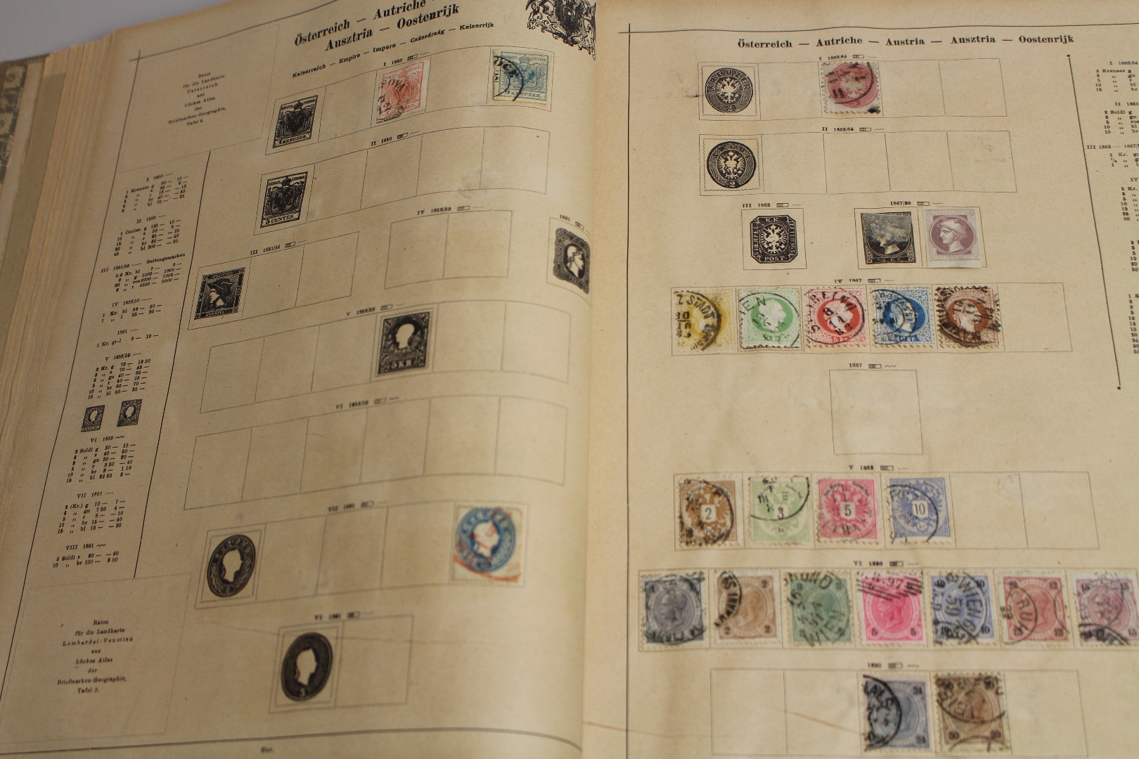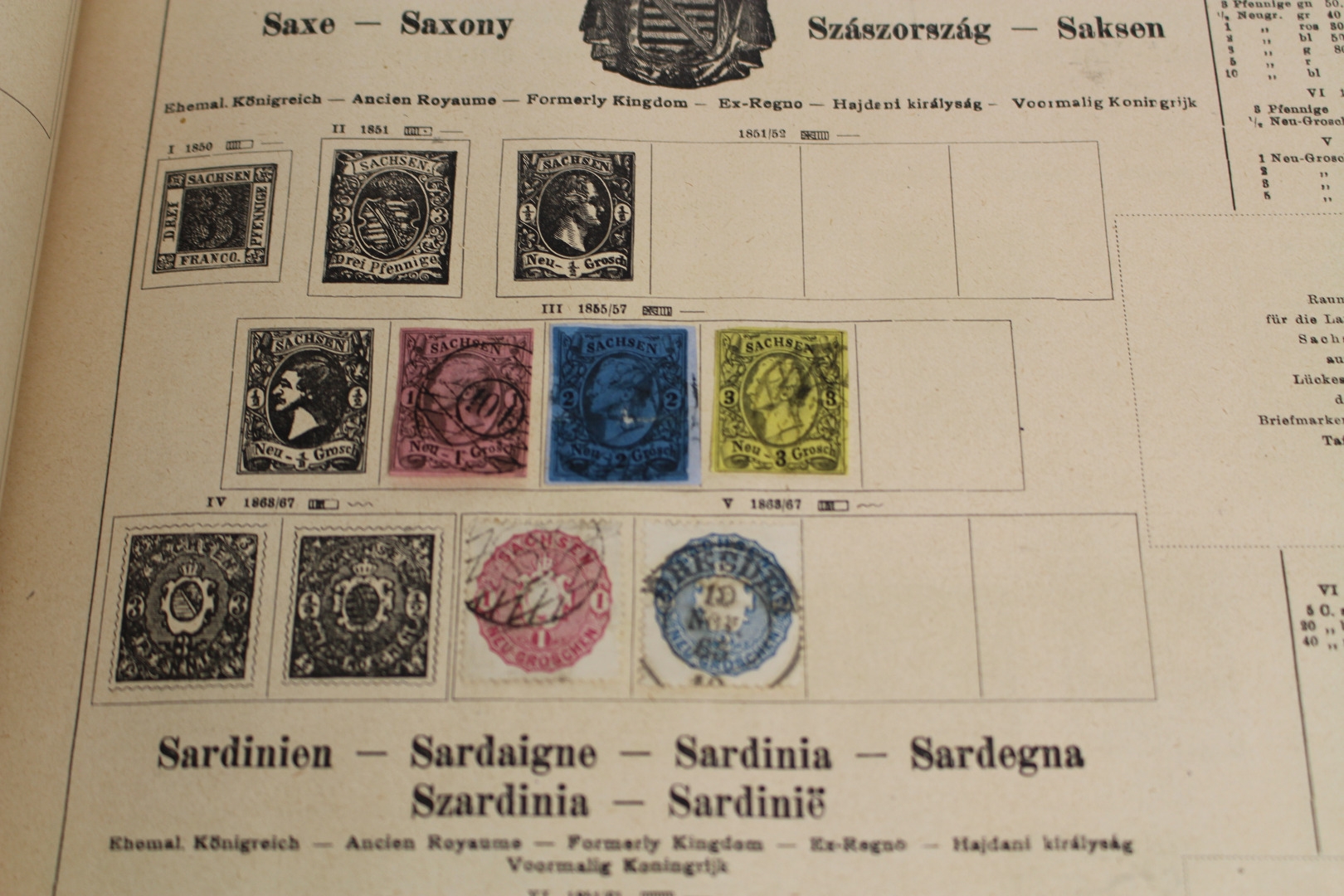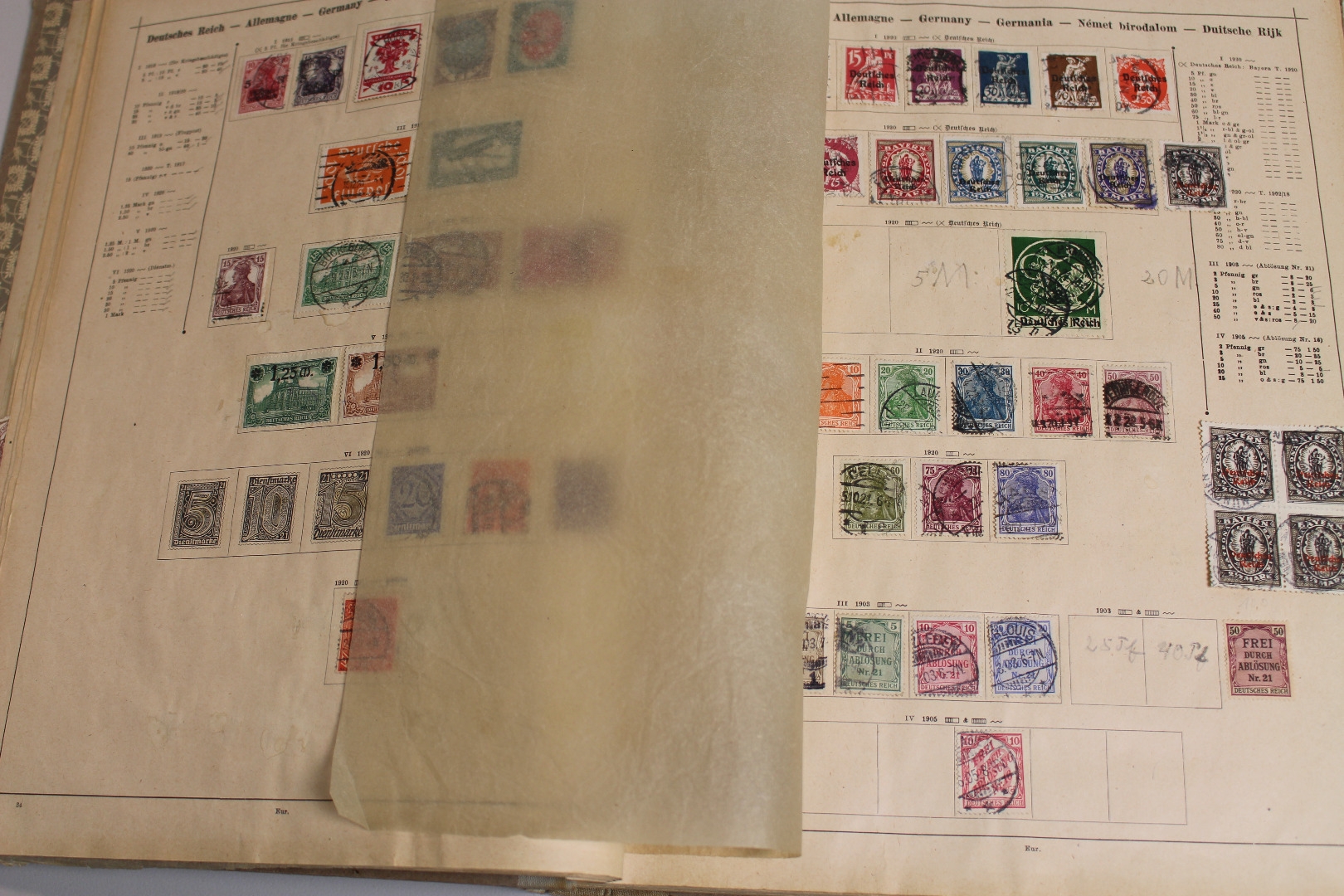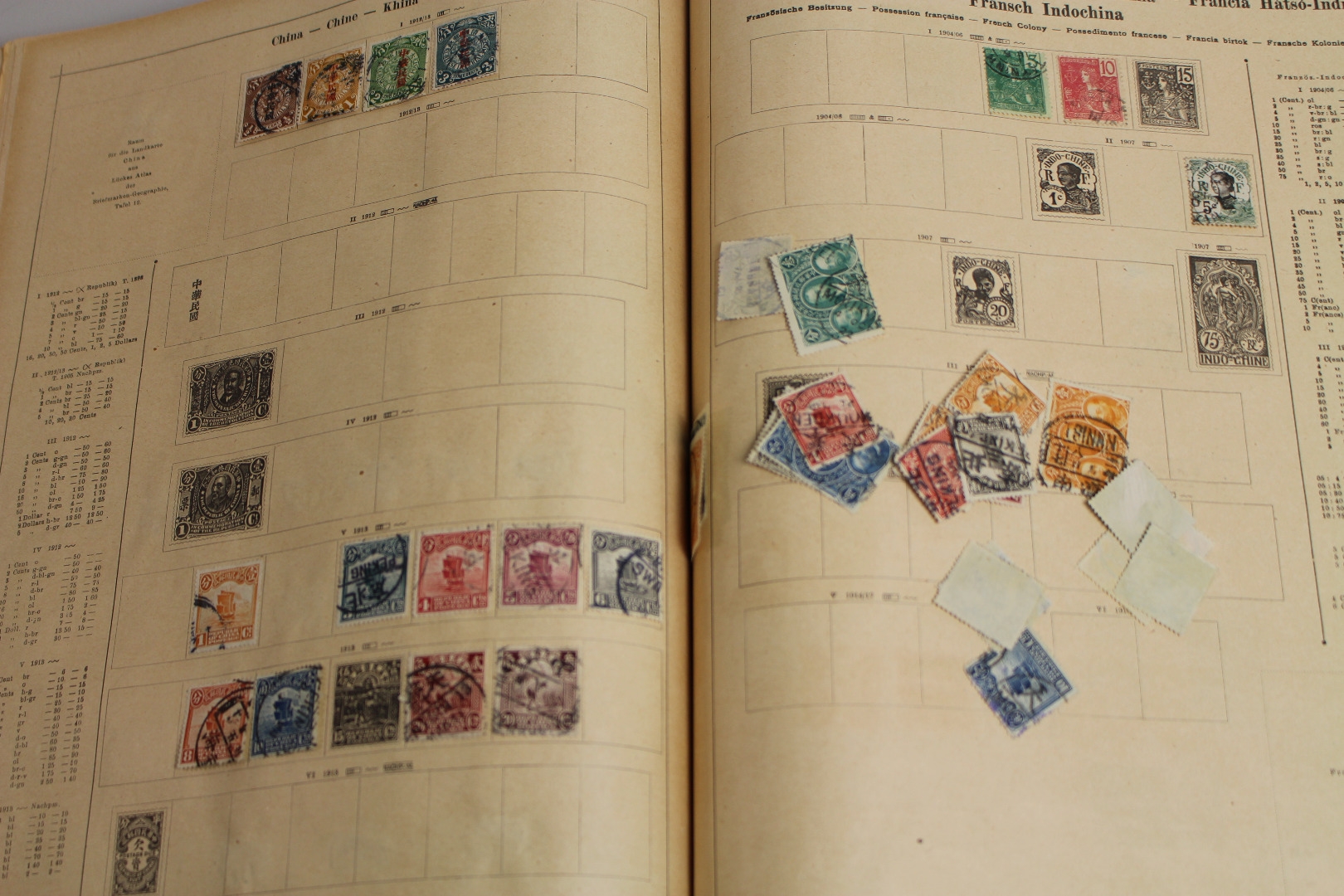 Uraltes Vordruckalbum "Ganze Welt" incl. der deutschen Gebiete. Enthalten auch viele interessante Ausgaben. Dabei Altdeutschland, Deutsches Reich, Frankreich, Großbritannien, China, USA usw. Auch das Album selbst befindet sich durchaus ansprechender Erhaltung.