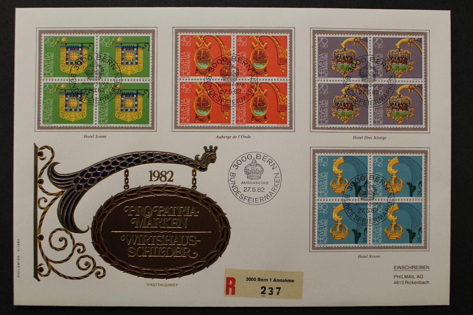 Pro Patria 1982, als R-Brief gelaufen