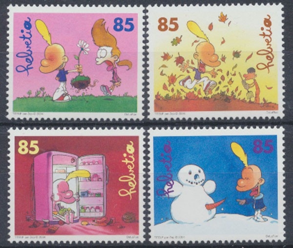 Comicfigur Titeuf in den vier Jahreszeiten.