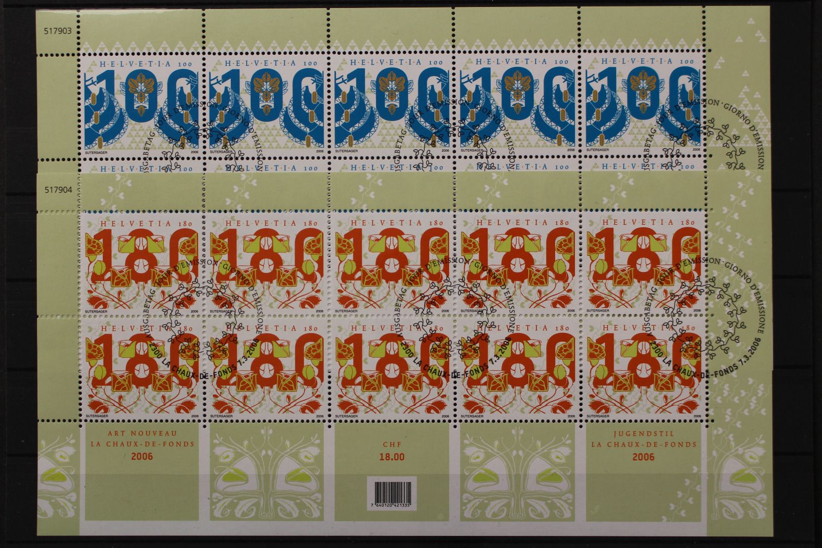 Schweiz, MiNr. 1954-1955 Kleinbogen, ESST