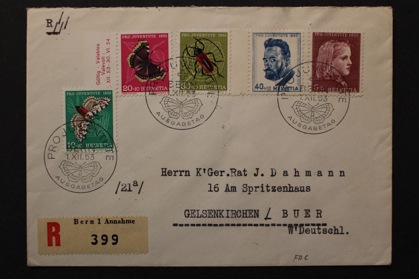 Pro Juventute 1953, echt gelaufen, ab Bern als R-Brief, Bedarfsbeleg