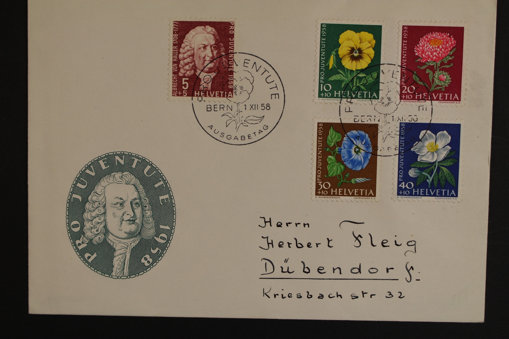 Pro Juventute 1958, echt gelaufener Bedarfsbeleg.