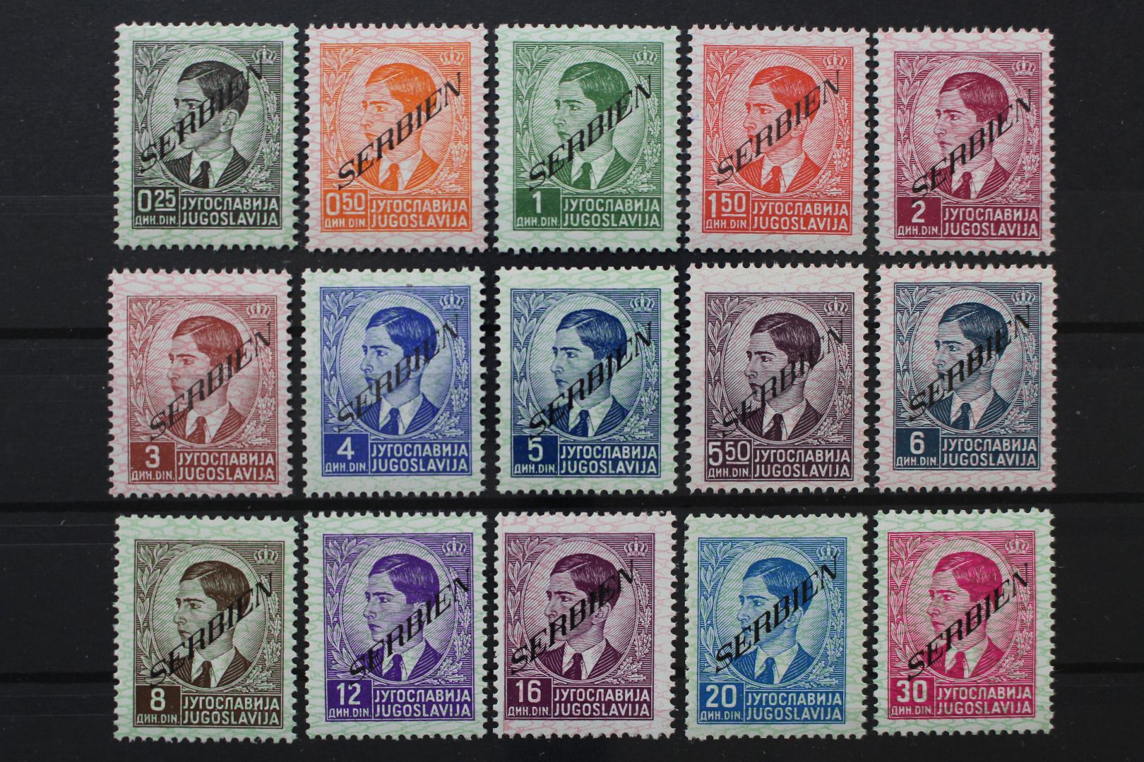 Marken von Jugoslawien mit Aufdruck von links nach rechts oben, geprüft Krischke