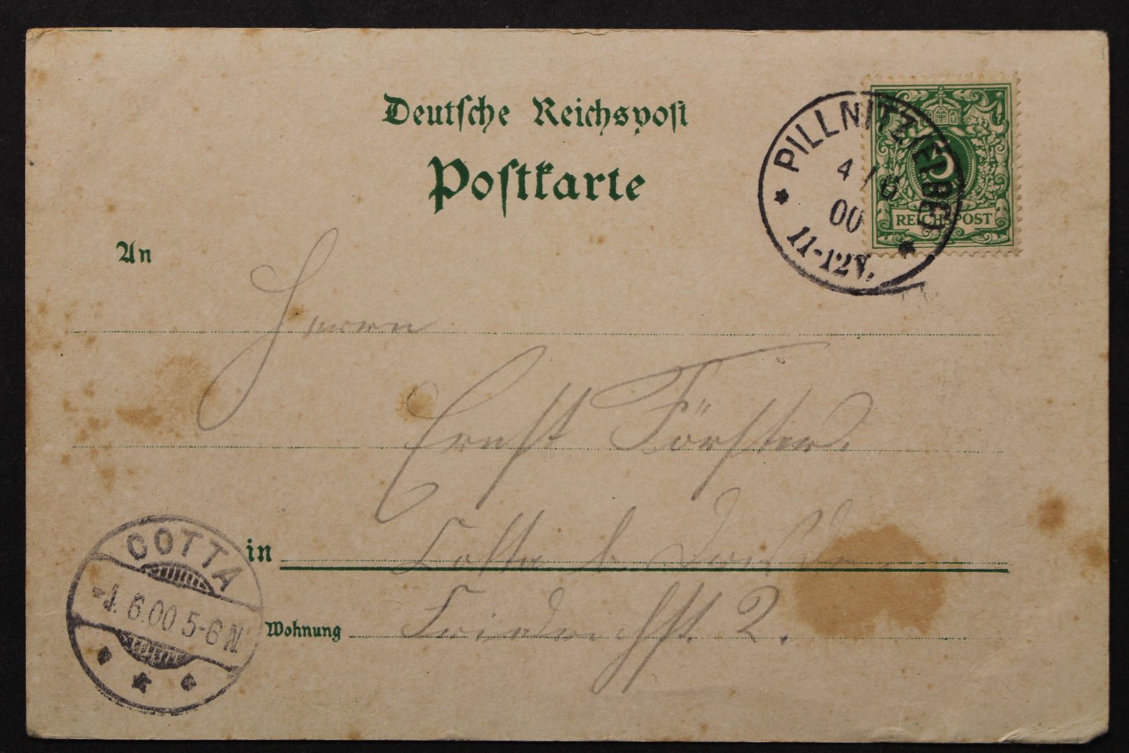 Karte gelaufen, Ecken bestoßen, fleckig und einige Knitter