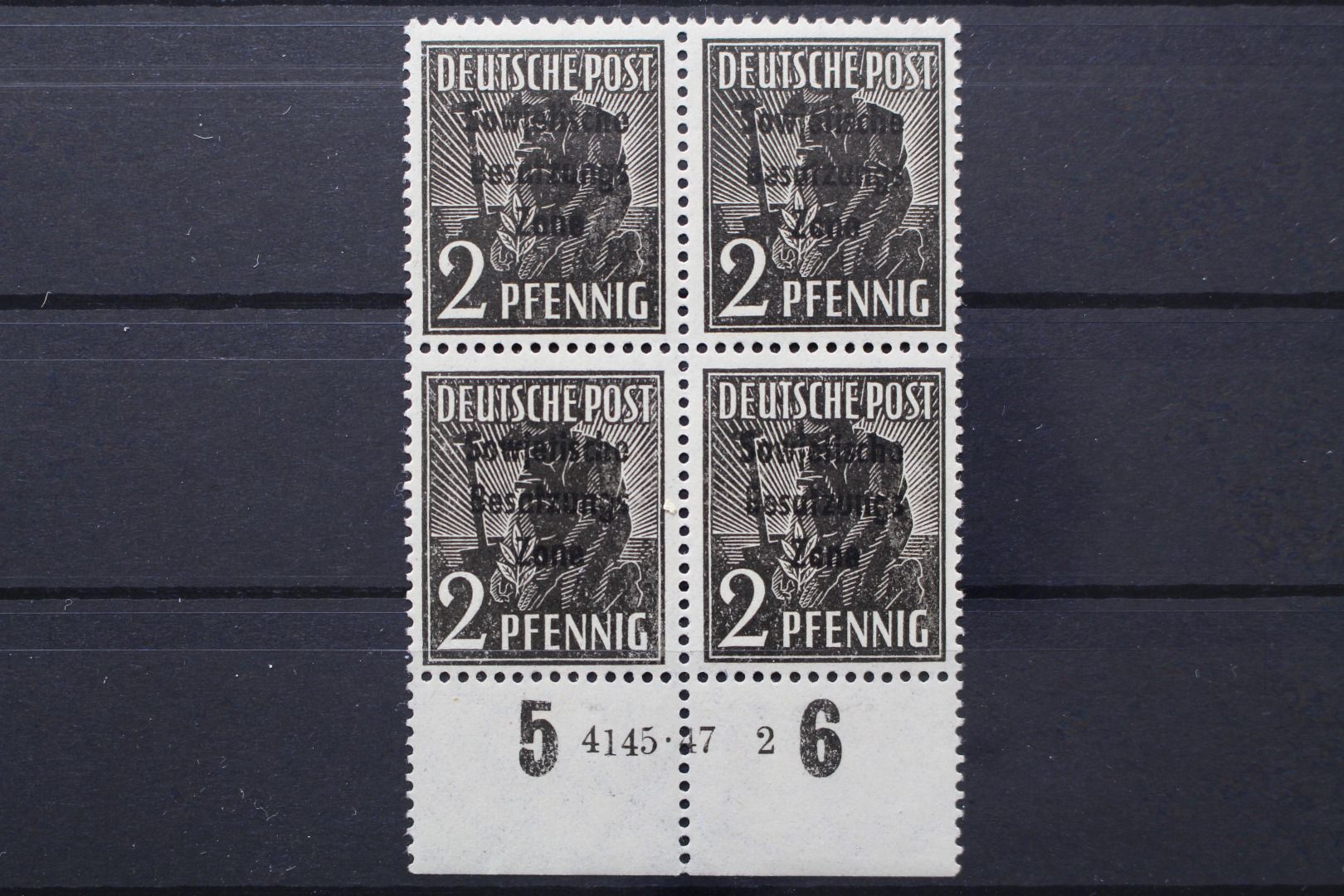 2 Pf. Freimarke mit Aufdruck, HAN 4145.47 2. Gummiseitig leichte Anhaftungen, Unterrand drei Zähne angetrennt.