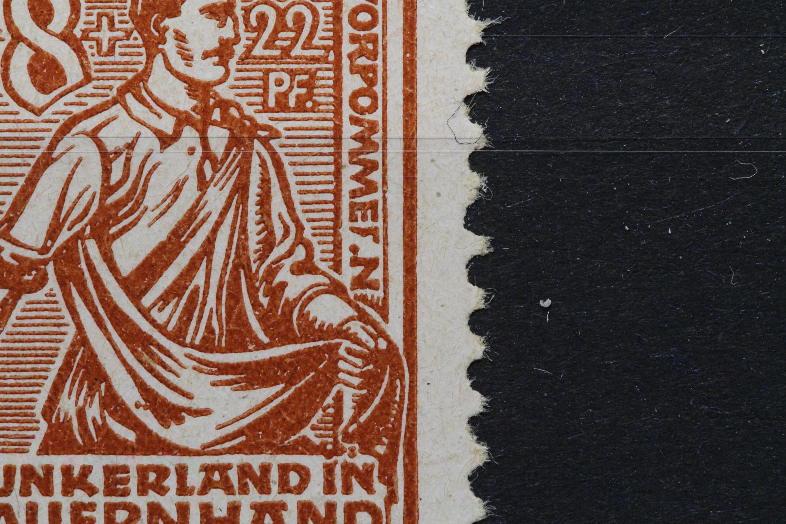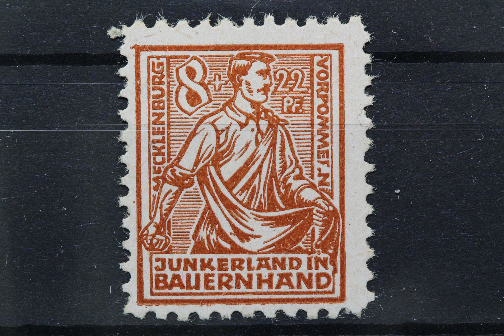 8 Pf. Bodenreform, Farbe geprüft Zierer, Plattenfehler: "R" in "Pommern" beschädigt