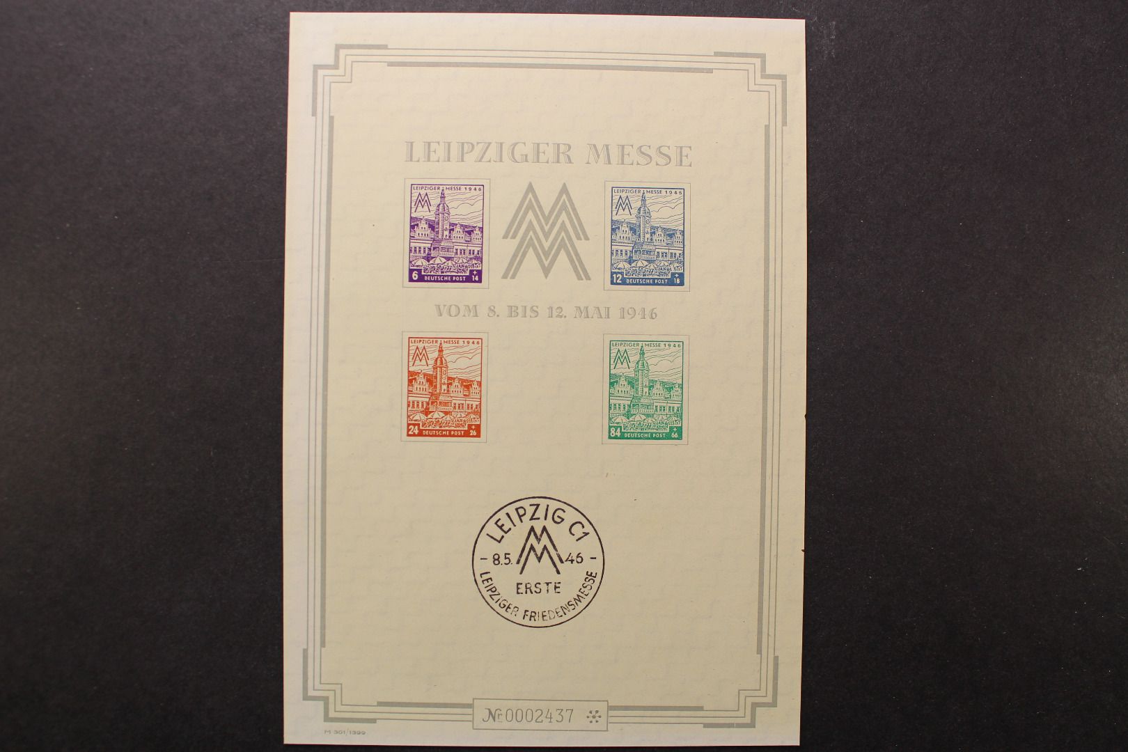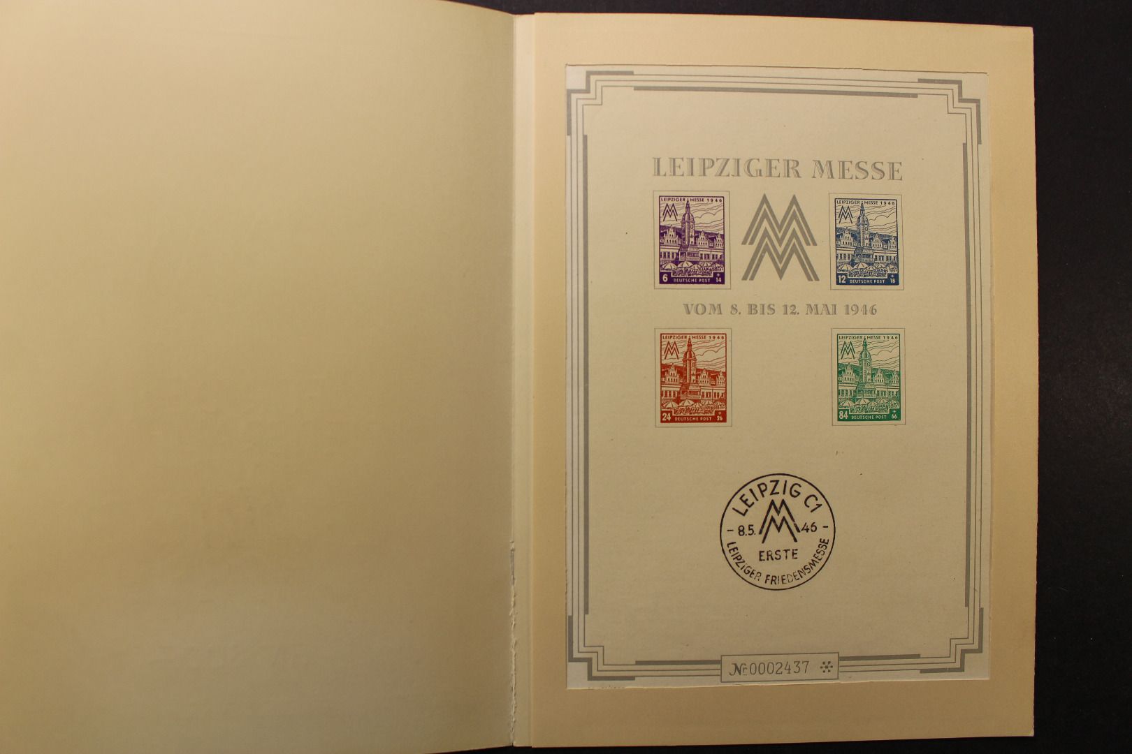 Leipziger Messe, Großblock incl. Schutzhülle. Der Block ist durch das Einlegen in die Hülle teils vergilbt (siehe Bilder).