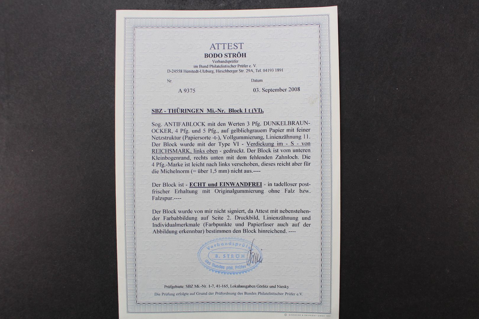 Sowjetische Zone, MiNr. Block 1 t, Unterrand, postfrisch, BPP Fotoattest