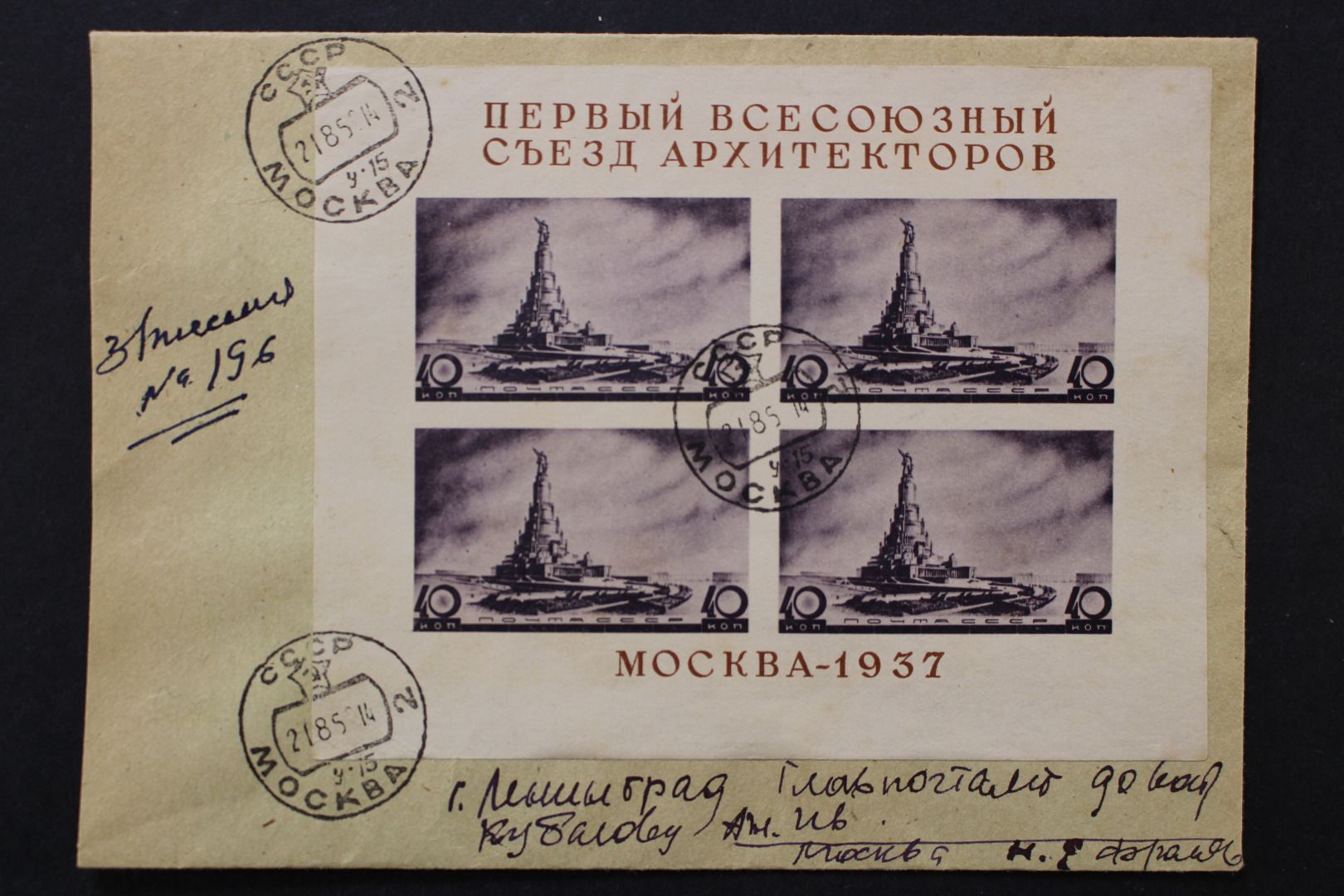 Architektenkongreß, Bedarfsbeleg, Block mit einigen bräunlichen Flecken und Eckknick rechts oben