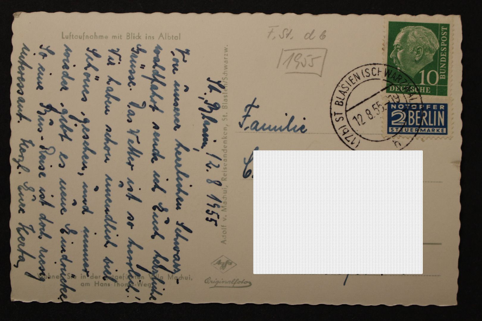Karte gelaufen, etwas bestoßen, leicht fleckig