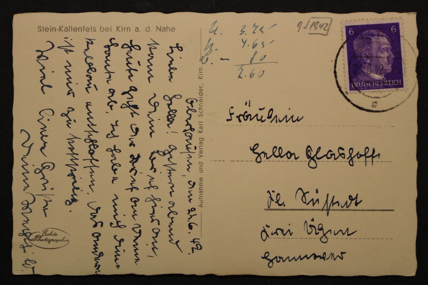 Karte gelaufen, etwas bestoßen, leicht fleckig