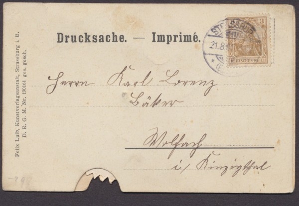 1905 gelaufen, leicht fleckig