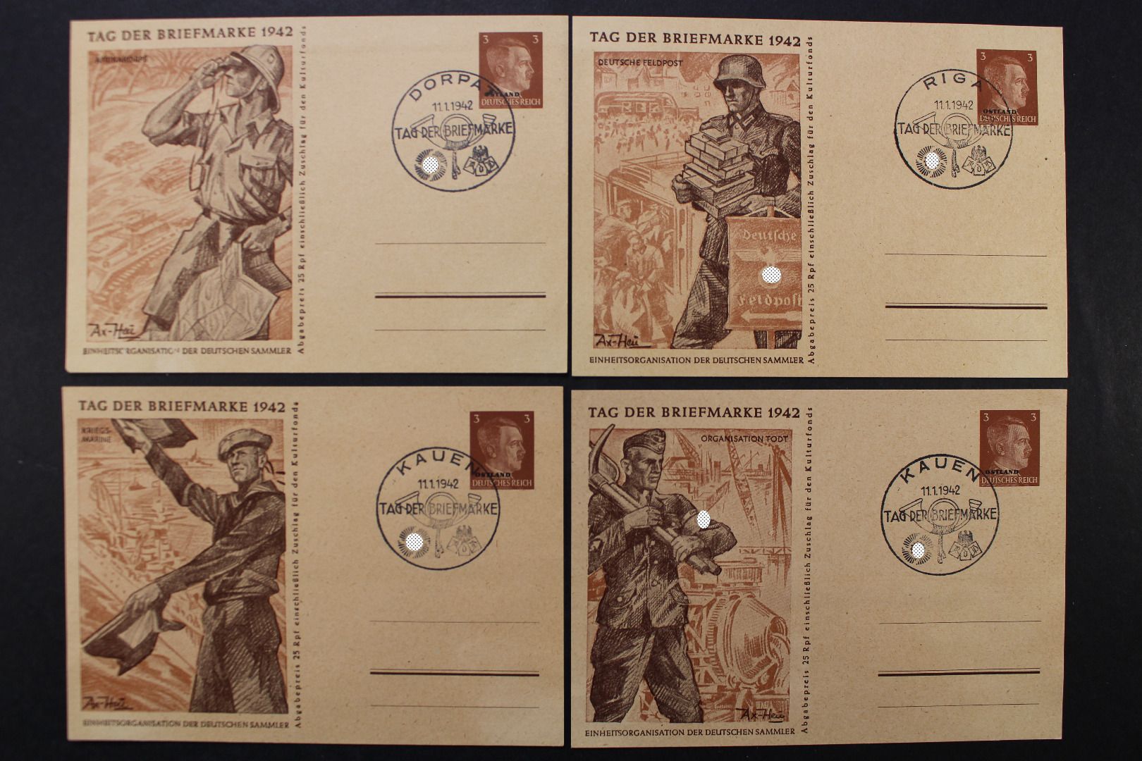 3 Pf Hitler mit Aufdruck, alle 4 Varianten