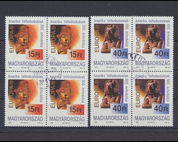 Europa 1992 - Amerika, zwei 4er Blöcke, sauber gestempelt