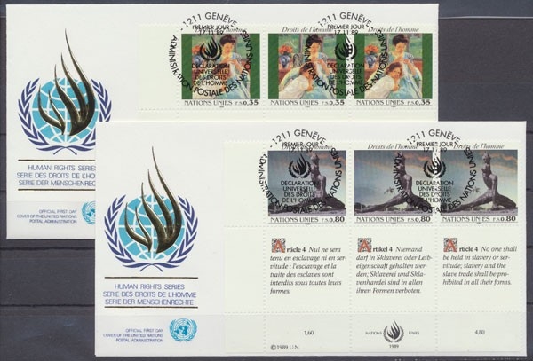 Allgem. Erklärung der Menschenrechte, 2 Ersttagsbriefe mit je ein Sechserblock