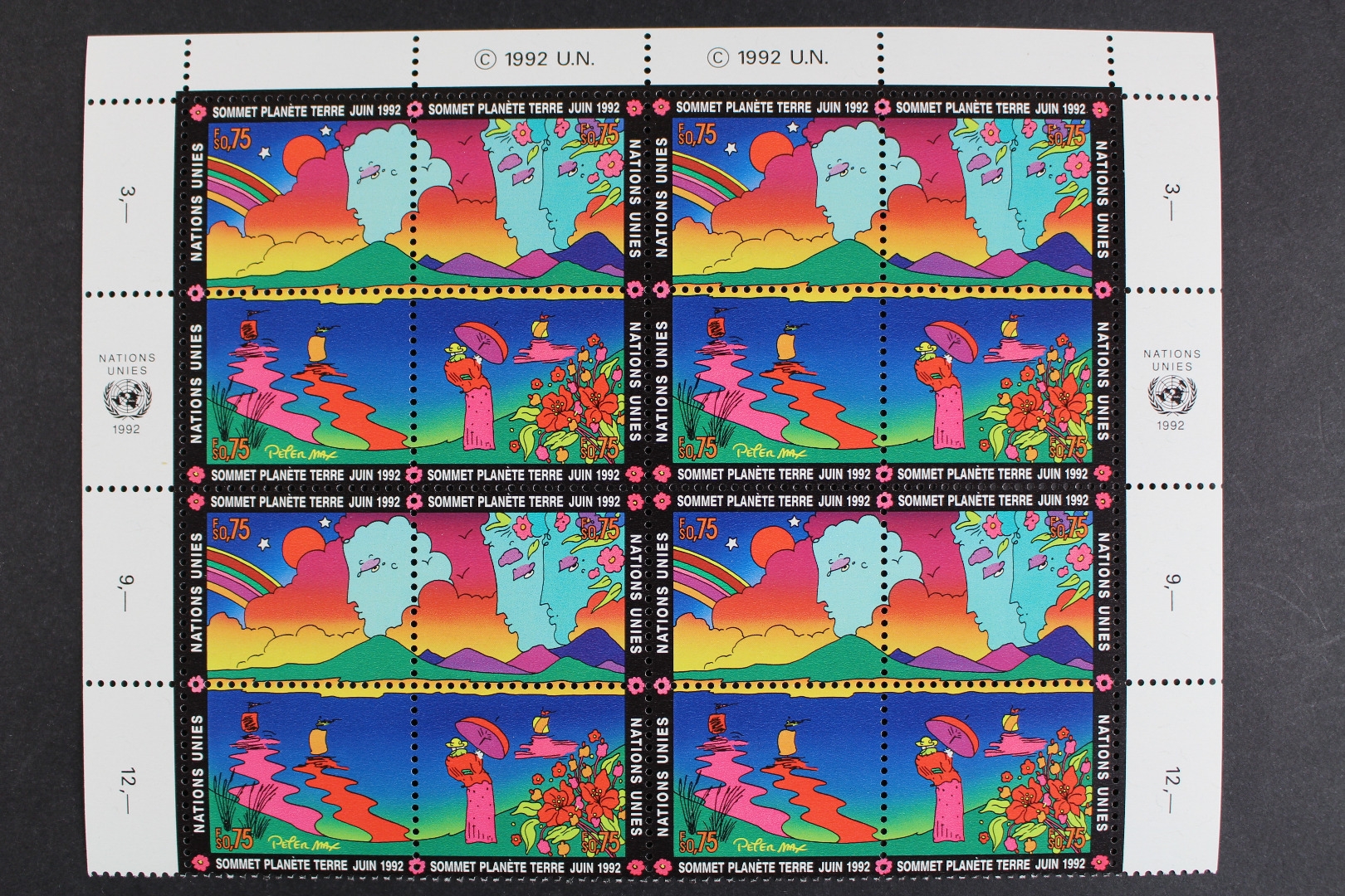 UNO Genf, MiNr. 215-218, Bogenteil, vier 4er Blöcke, postfrisch